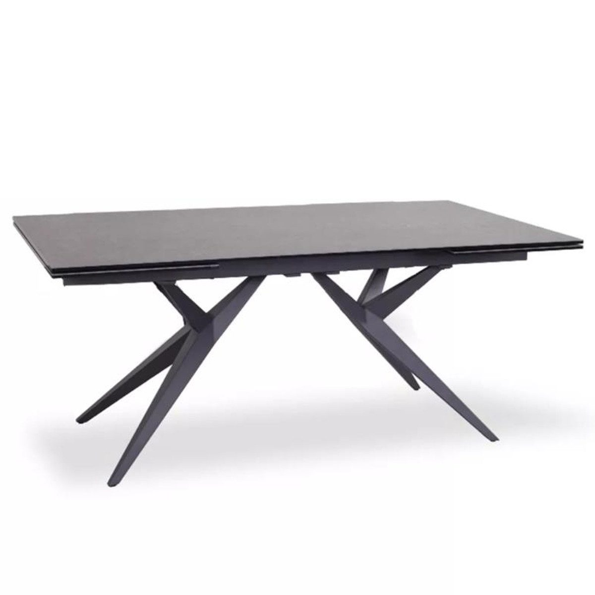 Das robuste schwarze Metallgestell sorgt für Stabilität, während die dunkelgraue Tischplatte aus Glaskeramik nicht nur optisch überzeugt, sondern auch besonders pflegeleicht ist. Dank der kratzfesten und hitzeresistenten Oberfläche bleibt Michela auch im Alltag immer makellos und lässt sich im Handumdrehen reinigen.