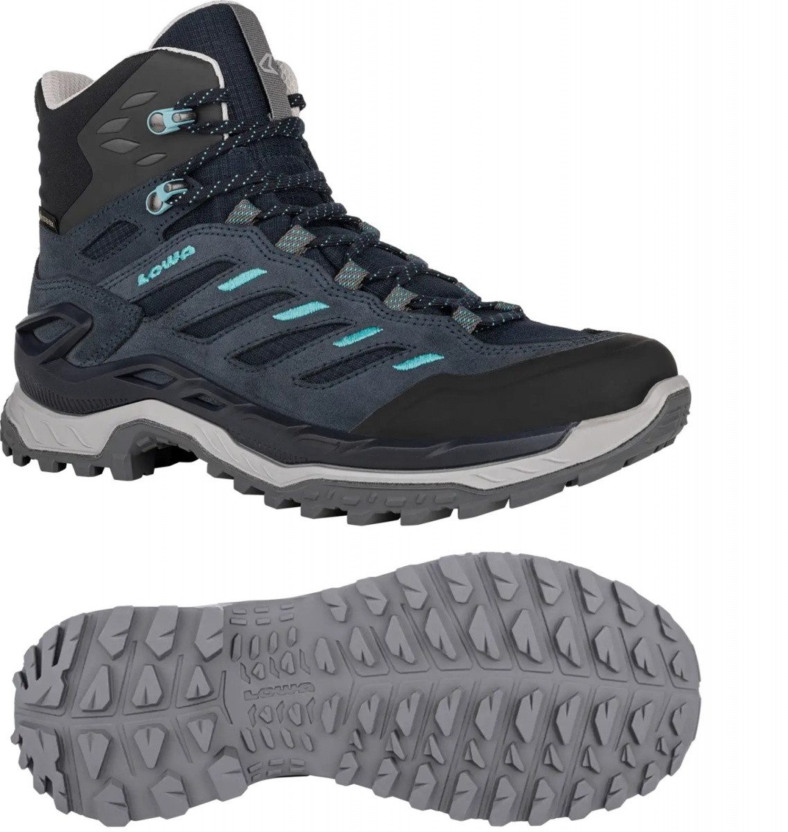 LOWA hat es schon wieder getan. Und aus etwas Gutem etwas noch Besseres gemacht. Man nehme den altbekannten SUPPORT FRAME und kombiniere diesen mit einem völlig neuen Sohlenkonzept – et voilá: ein neuer Meilenstein im Hiking-Bereich. So verfügt der INNOVO GTX MID nicht nur über eine zweifach angespritzte und komfortabel dämpfende LOWA® DYNAPU®-Zwischensohle. Der hochmoderne Wanderschuh fußt auch auf einer im Fersenbereich extra hochgezogenen Laufsohle im „Chunky Style“, die dank des multidirektionalen Stollendesigns und der dadurch größeren Kontaktfläche optimalen Grip bietet. Auch beim Tragekomfort geht der Hiking-Schuh neue Wege und profitiert von einem robusten Materialmix aus Spaltleder und Textil, wasserdichter GORE-TEX-Membran sowie einer Vielzahl atmungsaktiver Flächen. Gemeinsam mit einem spoilerartig gestalteten Kragen, der weit nach vorn gezogenen Zwei-Zonen-Schnürung und Klemmhaken sorgt dies für eine optimale Passform. Ergänzt werden diese Features durch einen hochgezogenen Zehenpuffer sowie Zugschlaufen für den leichteren Ein- und Ausstieg. Wie gemacht für kilometerlangen Wanderspaß der Extraklasse. Multifunktionsschuh, Leichtwanderschuh und Trekking-Schuh vereint in einem einzigen Modell? Geht nicht, gibt’s nicht!