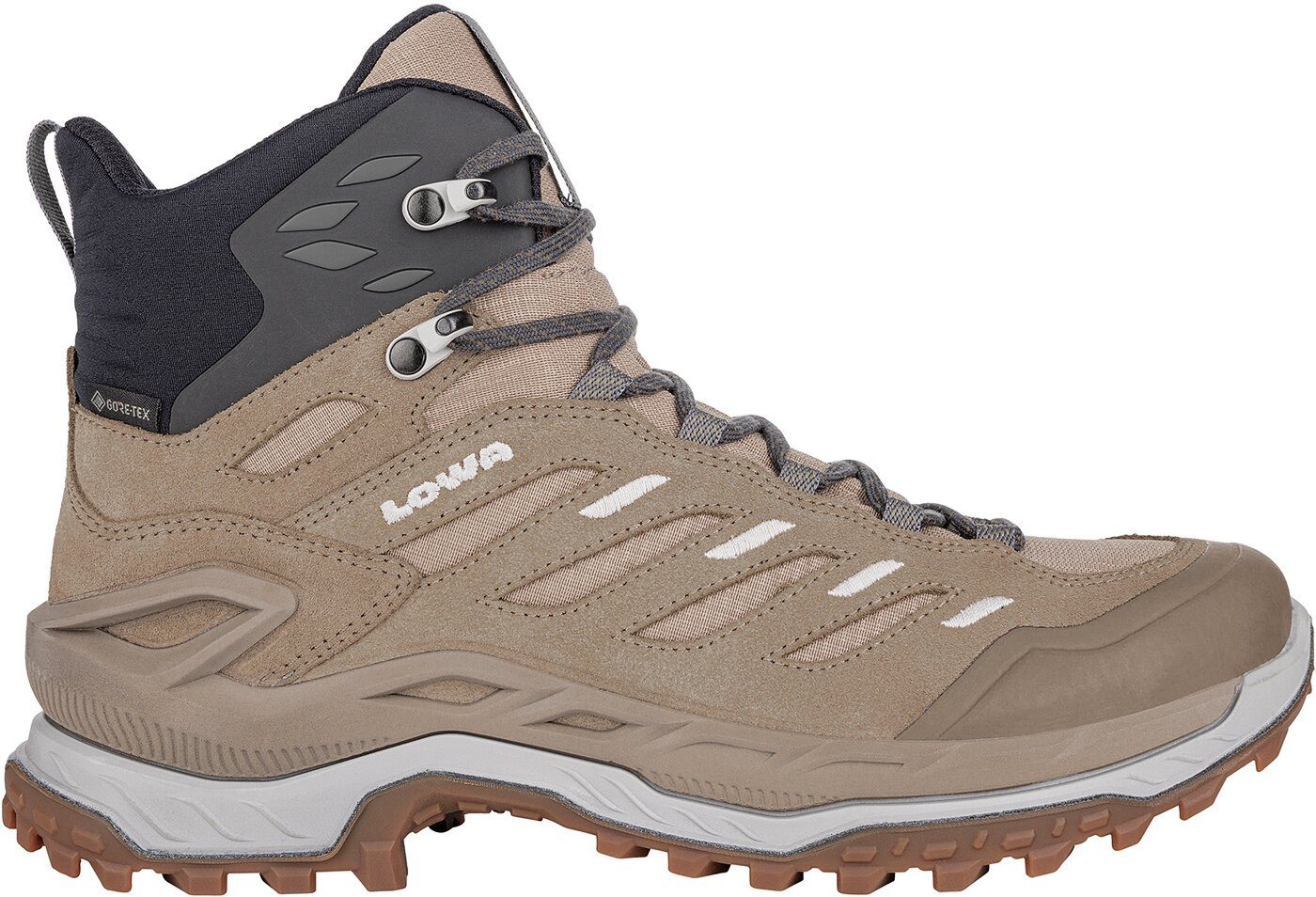 Um eine optimale Passform zu gewährleisten, wird der Leisten beim INNOVO GTX MID Ws speziell an die weibliche Anatomie angepasst. Der Leisten ist maßgeblich dafür zuständig, dass der Schuh gut sitzt. Da Frauenfüße über ein geringeres Volumen verfügen, wird zum Beispiel die Risthöhe und der Ballenumfang angepasst.