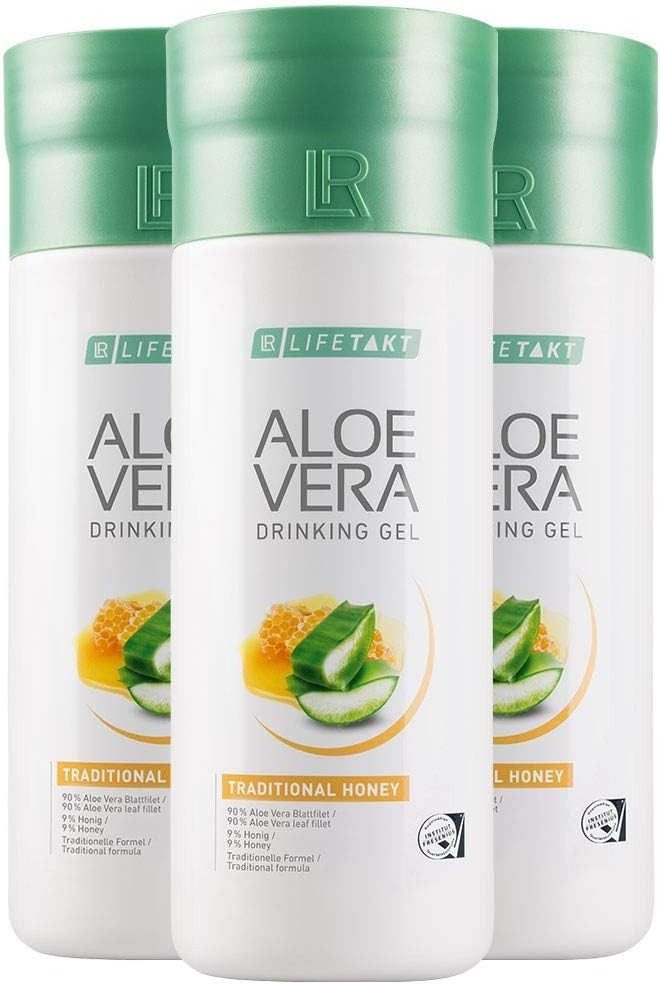Aloe Vera Drinking Gel mit Honig 3er Set Die 3 Grundbausteine für deine Gesundheit + VERSORGUNG: Liefert wichtige Nährstoffe und verbessert die Nährstoffverwertung1 + SCHUTZ: Unterstützt die Zellerneuerung und dein Immunsystem2,3 + STOFFWECHSEL: Dein Energiestoffwechsel wird verbessert4 NATÜRLICH: 90 % Aloe Vera-Blattgel TRADITIONELL: Mit 9 % Honig und Vitamin C LECKER: Mit angenehmem, natürlichem Honig-Geschmack Die Basis: das Multitalent Aloe Vera Bereits seit Jahrtausenden wird die Aloe-Vera-Pflanze für ihrer einzigartige Zusammensetzung an Inhaltsstoffen geschätzt. Das im Inneren befindliche Blattfilet besitzt über 200 Vitalstoffe. Es stärkt zudem die Bioverfügbarkeit wichtiger Nährstoffe. So werden Vitamine besser vom Körper aufgenommen.5,6 + DEIN ENERGIEVERSORGER: Die essentiellen Wirkstoffe im Aloe Vera-Gel sorgen für mehr Energie und Vitalität4. Die Bioverfügbarkeit der Wirkstoffe wird erhöht. + DEIN IMMUNSCHUTZ: Das Aloe Vera-Gel stärkt das Immunsystem und hält deine körpereigenen Prozesse in Balance.5 + DEIN REGENERIERER: Das Aloe Vera Gel unterstützt Aufbau- und Regenerationsprozesse.6 + DEIN STOFFWECHSEL-PROFI: Das Aloe Vera-Gel regt den Stoffwechsel an.4 Für unserer Aloe Vera Drinking Gele benutzen wir ausschließlich das reine Blattfilet der Aloe Barbadensis Miller. Dieses befindet sich im Inneren des Blattes der Aloe-Vera-Pflanze. 1Vitamin C erhöht die Eisenaufnahme und trägt zu einem normalen Energiestoffwechsel bei. 2Vitamin C trägt zu einer normalen Kollagenbildung für eine normale Funktion der Knochen, Knorpelfunktion und der Haut bei. 3Vitamin C trägt zu einer normalen Funktion des Immunsystems bei. 4Das in den LR Aloe Vera Drinking Gelen enthaltene Vitamin C trägt zu einem normalen Energiestoffwechsel bei. 5Das in den LR Aloe Vera Drinking Gelen enthaltene Vitamin C trägt zu einer normalen Funktion des Immunsystems bei. 6Das in den LR Aloe Vera Drinking Gelen enthaltene Vitamin C trägt zur Verringerung von Müdigkeit und Ermüdung bei und trägt zur Regeneration der reduzierten Form von Vitamin E bei. Aloe Vera Drinking Gel Traditionell mit Honig steht auf der Kölner Liste®. Die Kölner Liste® führt Nahrungsergänzungsmittel mit minimiertem Dopingrisiko, die von einem in der NEM-Analytik auf Dopingsubstanzen weltweit führenden Labor auf anabole Steroide und Stimulantien getestet wurden. Все weiteren Infos gibt es auf der Internetseite der Kölner Liste® unter www.koelnerliste.com.