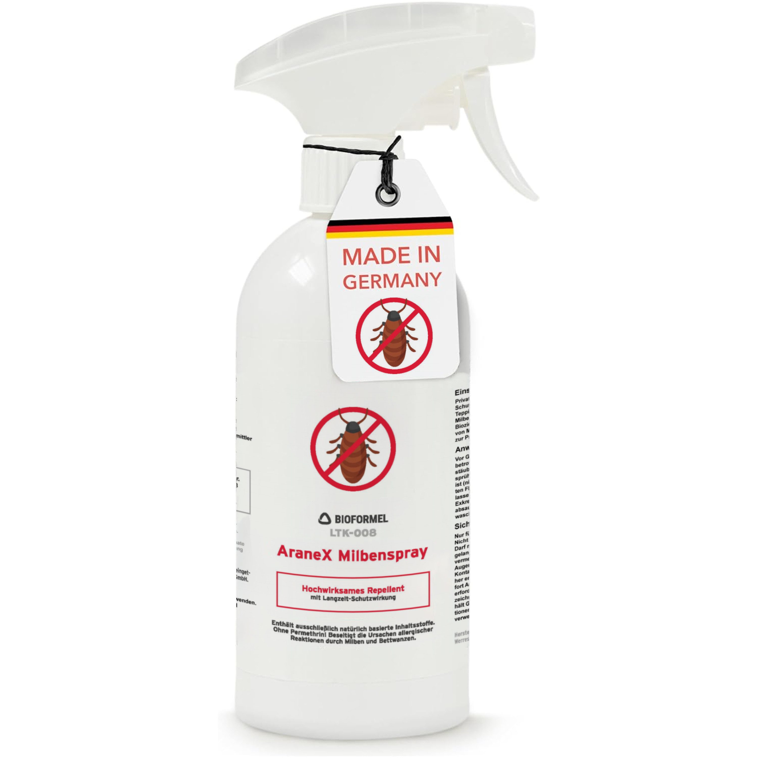 Gebrauchsanweisung | Vor Gebrauch kurz schütteln und die betroffenen Stellen mit dem Feinzerstäuber im Abstand von 30-50 cm besprühen und danach trocknen lassen. Dann die abgestorbenen Milben, Bettwanzen und deren Rückstände (Borsten, Exkremente etc.) mit dem Staubsauger absaugen oder die Textilien wie üblich waschen. |