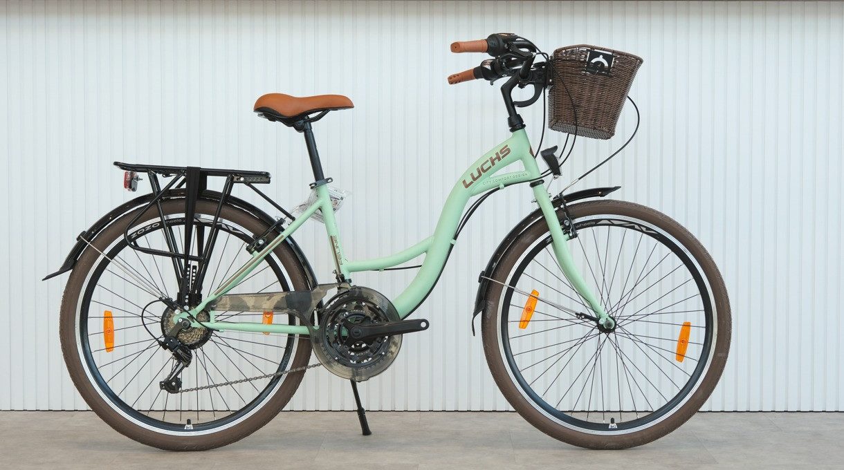 Ausstattung | Beleuchtung Fahrradständer Kettenschutz Klingel Schutzblech Gepäckträger Rattankorb |