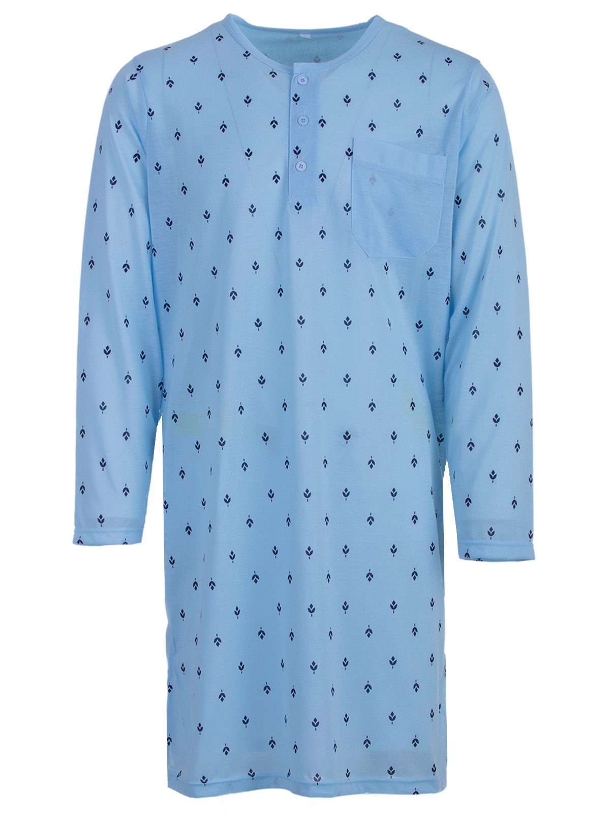 Nachthemd für Herren in klassischer Optik. Das Shirt ist angenehm und leicht auf der Haut zu tragen. Brusttasche mit Allover Druck.