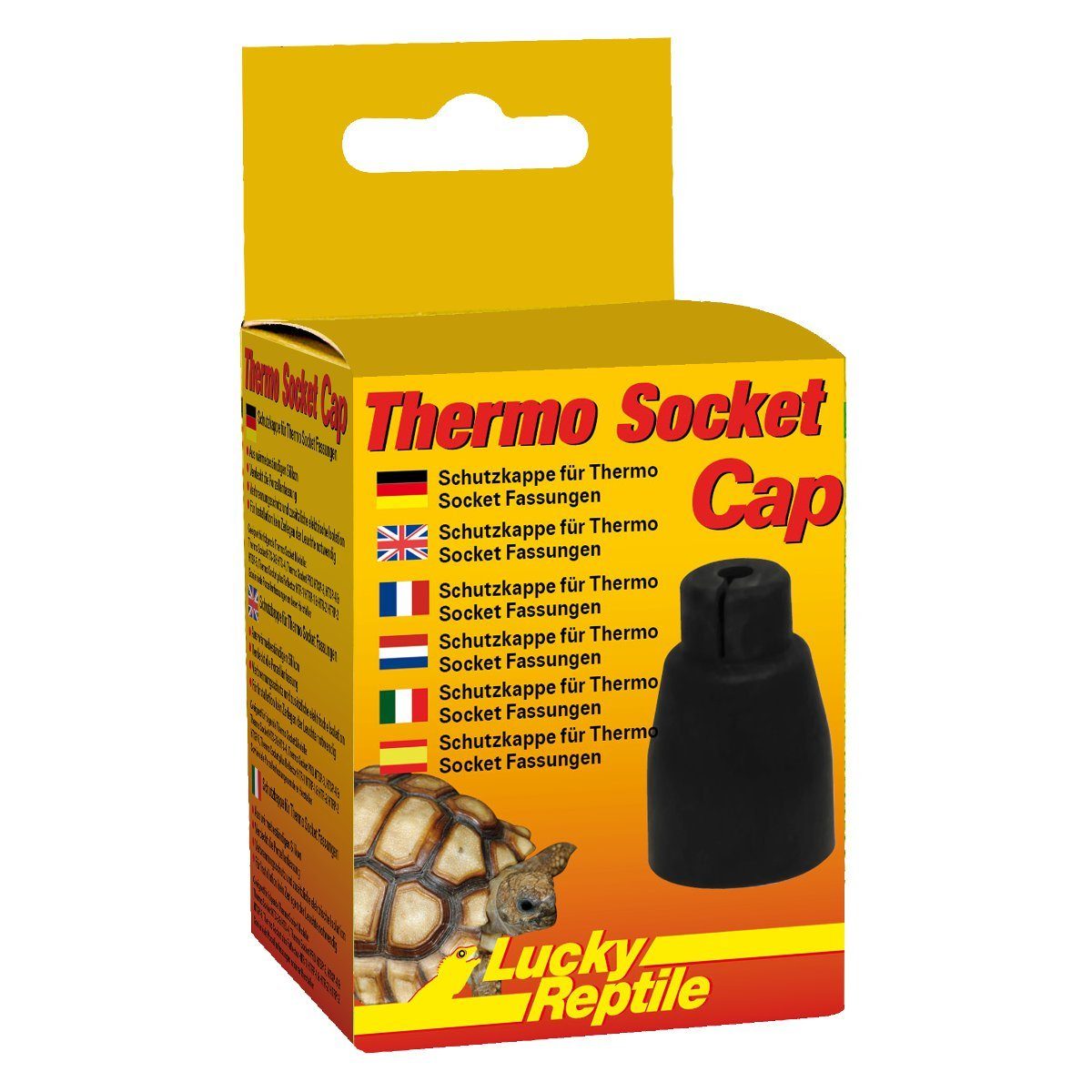Der Lucky Reptile Thermo Socket Cap besteht aus flexiblem Silikon und wird einfach über die Porzellanfassung gezogen. Eine Demontage der Leuchte ist dafür nicht erforderlich. Die Porzellanfassung wird komplett verdeckt und fällt nicht mehr störend auf.