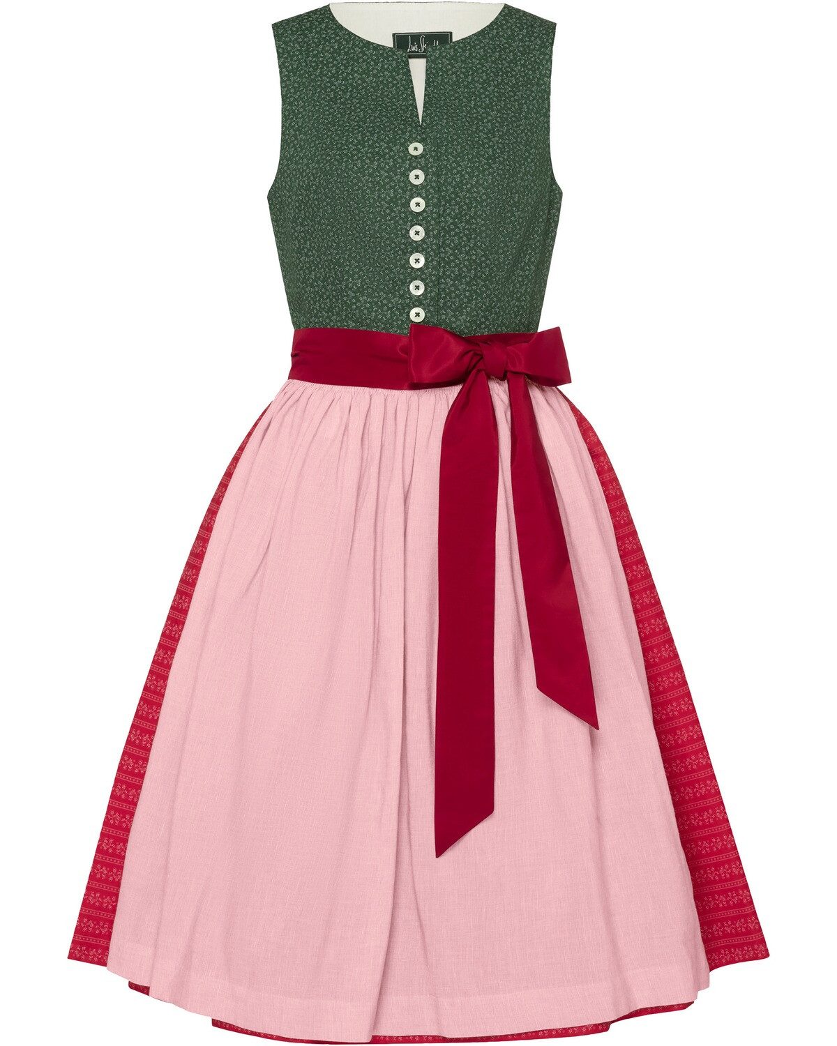 Klassisches Design mit floralen Details Das Midi-Dirndl von Luis Steindl überzeugt durch seine ansprechende Kombination aus reiner Baumwolle und einem frischen, floralen Jacquardmuster. Das hochgeschlossene Mieder mit U-Boot-Ausschnitt und schmalem V-Ausschnitt sorgt für eine schmeichelhafte Silhouette. Die Knopfleiste mit Perlmuttknöpfen ergänzt das Mieder und verleiht dem Dirndl eine klassische Note. Praktische Details und stilvolle Akzente Der farblich abgesetzte Rock mit klassischem Streifen-Jacquardmuster harmoniert perfekt mit dem Mieder und sorgt für einen durchgängigen Look. Praktische Details wie die zwei Rocktaschen in den Seitennähten bieten zusätzlichen Stauraum für kleine Utensilien. Die farblich abgestimmte Schürze mit feiner Leinenstruktur und einem leicht changierenden Schleifenband rundet das Gesamtbild ab. Dieses Modell ist ideal für festliche Anlässe und vereint traditionelle Elemente mit modernen Akzenten. Oberstoff: 100% Baumwolle; Futter: 100% Baumwolle; Sonstige Materialien: Schürze, 80% Viskose, 20% Leinen. Dieser Artikel enthält nichttextile Teile tierischen Ursprungs.