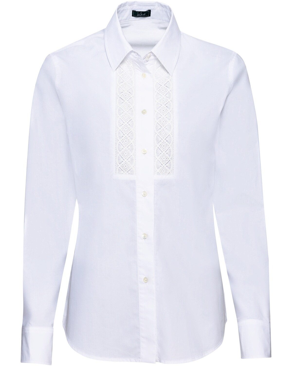 Die leicht taillierte Damen Hemdbluse von Luis Steindl vereint klassischen Landhausstil mit modernem Komfort. Hergestellt aus hochwertigem Baumwollpopeline, bietet sie ein angenehmes Tragegefühl und eine hervorragende Passform. Der abgerundete Saum verleiht der Bluse eine elegante Silhouette, während die Zweiknopfmanschetten und der Kragensteg mit zwei Knöpfen für einen stilvollen Abschluss sorgen. Ein besonderes Highlight dieser Bluse ist der filigrane Spitzeneinsatz, der seitlich der Knopfleiste angebracht ist. Dieses liebevolle Detail verleiht der Hemdbluse eine feminine Note und hebt sie von herkömmlichen Designs ab. Die Knöpfe aus schimmerndem Perlmutt runden das Gesamtbild harmonisch ab und setzen edle Akzente. Ideal für verschiedene Anlässe, lässt sich die Bluse sowohl im Alltag als auch zu festlicheren Gelegenheiten tragen. Ob kombiniert mit einer Jeans für einen lässigen Look oder mit einem Rock für einen eleganten Auftritt – die Hemdbluse von Luis Steindl ist vielseitig einsetzbar und ein Must-Have für modebewusste Damen. Oberstoff: 100% Baumwolle
