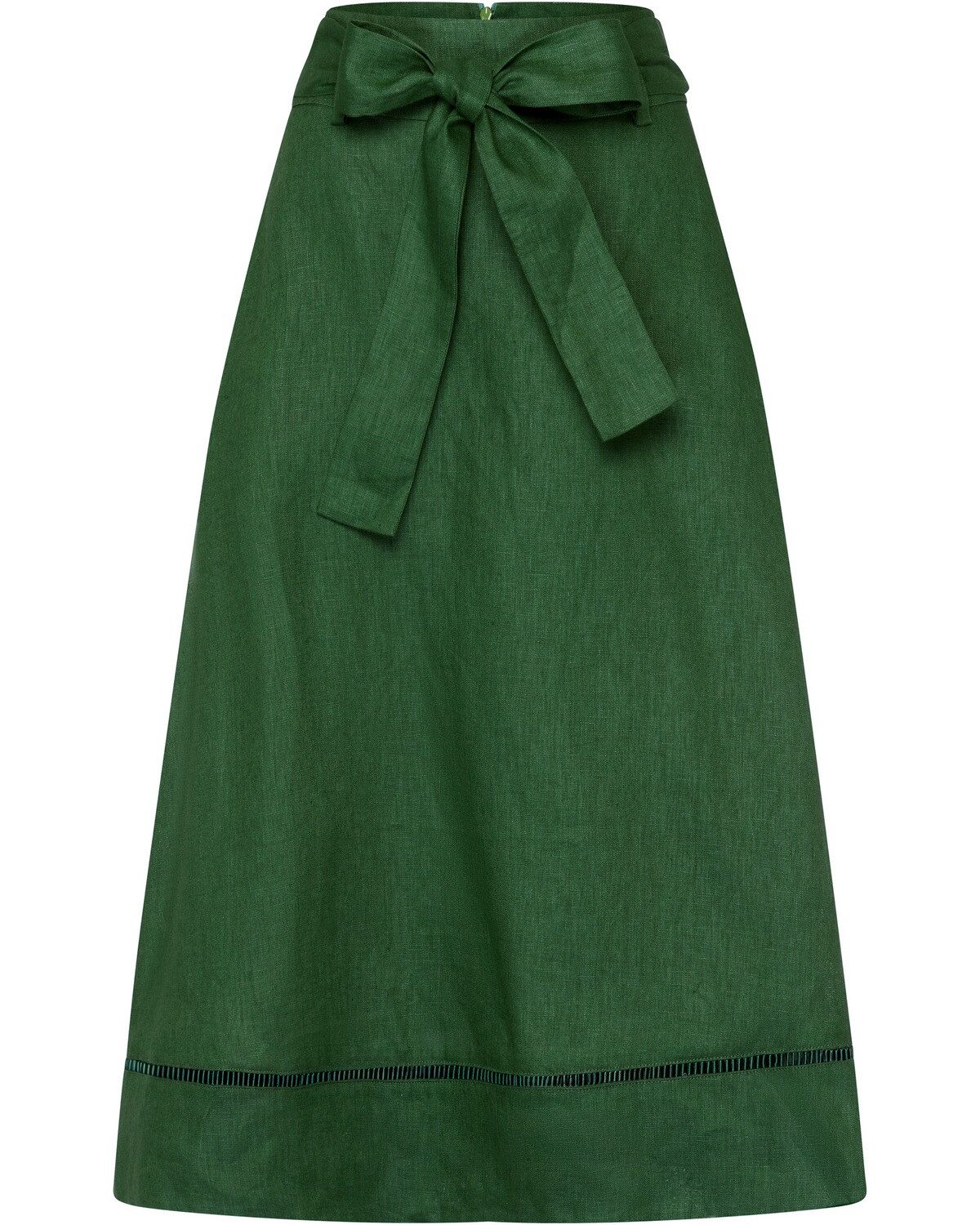 Der Damen Luis Steindl Rock aus grünem Leinen verkörpert den zeitlosen Charme des Landhausstils und bietet eine harmonische Verbindung von Eleganz und Bequemlichkeit. Der breite Bund mit Gürtelschlaufen und einem passenden Stoffgürtel sorgt für eine individuelle Anpassung und betont die Taille. Die sanfte, grüne Farbgebung erinnert an die Natur und verleiht jedem Outfit eine frische Note. Praktische Taschen in den Seitennähten bieten nicht nur zusätzlichen Stauraum, sondern unterstreichen auch die lässige Ausstrahlung des Rocks. Der weit geschnittene Rock sorgt für eine angenehme Bewegungsfreiheit und fällt elegant mit einem Hohlsaum am Saum, der dem Gesamtbild eine feine, verspielte Note verleiht. Dieser Rock ist die perfekte Wahl für unbeschwerte Sommertage oder entspannte Ausflüge ins Grüne. Der Reißverschluss in der hinteren Mitte ermöglicht ein einfaches An- und Ausziehen und rundet das durchdachte Design ab. Ob kombiniert mit einem luftigen Blusenshirt oder einem klassischen Top, der Damen Luis Steindl Rock ist vielseitig einsetzbar und ein Must-Have für modebewusste Frauen, die den Landhausstil schätzen. Ein Kleidungsstück, das sowohl im Alltag als auch bei besonderen Anlässen begeistert. Oberstoff: 100% Leinen; Futter: 100% Viskose