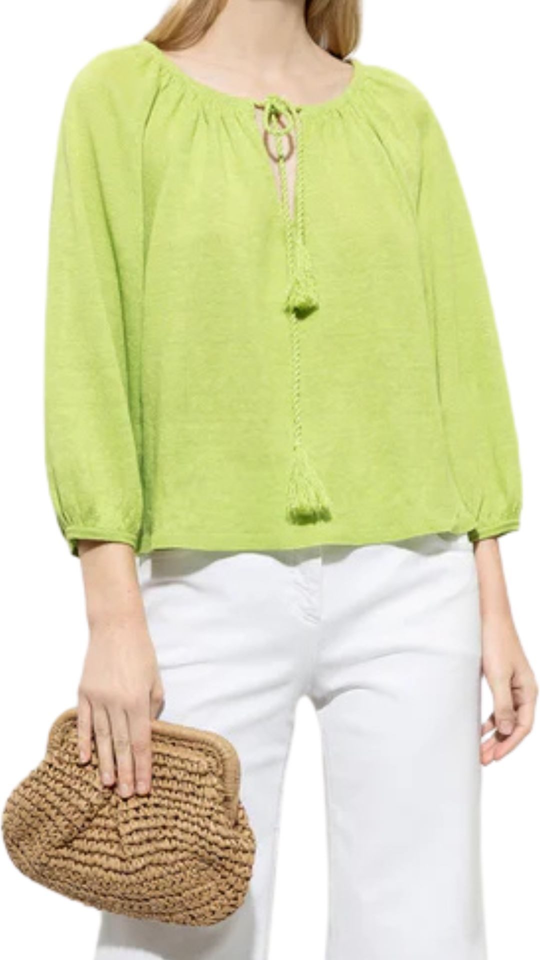 NEU Luisa Cerano NEU . Feinstrick-Pullover, aus edlem - italienischem Leinen-Garn, weite Ärmeln - überschnittene Schultern, Tunika-Style mit Boho-Flair, lässige Passform und Kordelzug am Ausschnitt. . Farbe: grün (pea green) Material : 100% Leinen