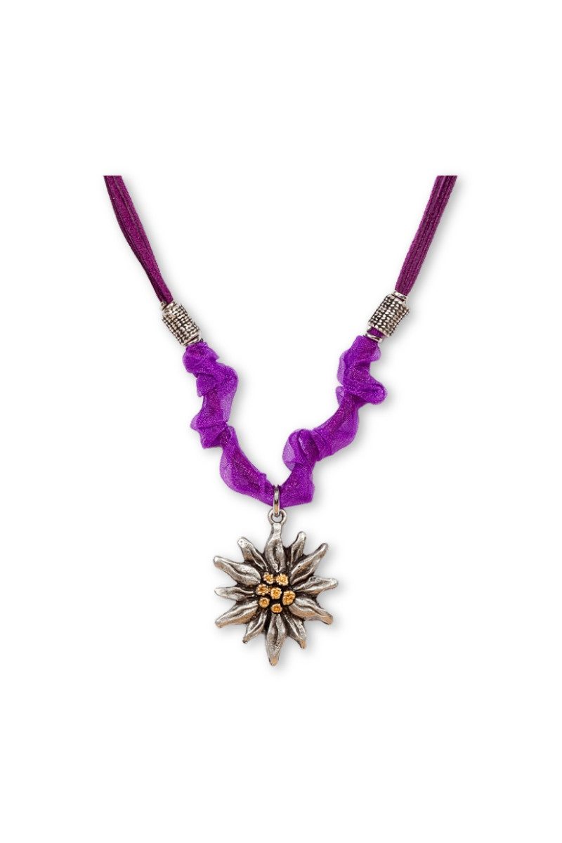 Metall: echt versilbert und nickelfrei Durchmesser Edelweißanhänger: 3,5 cm Длина der Kette: ca. 40 cm + 5 cm Verlängerungskettchen Farben: beere, hellgrün, kirschrot, rosa, royal, schwarz, tanne, violett