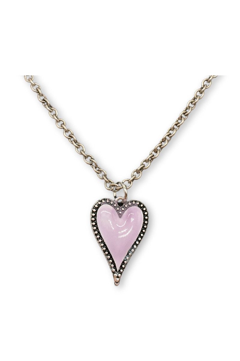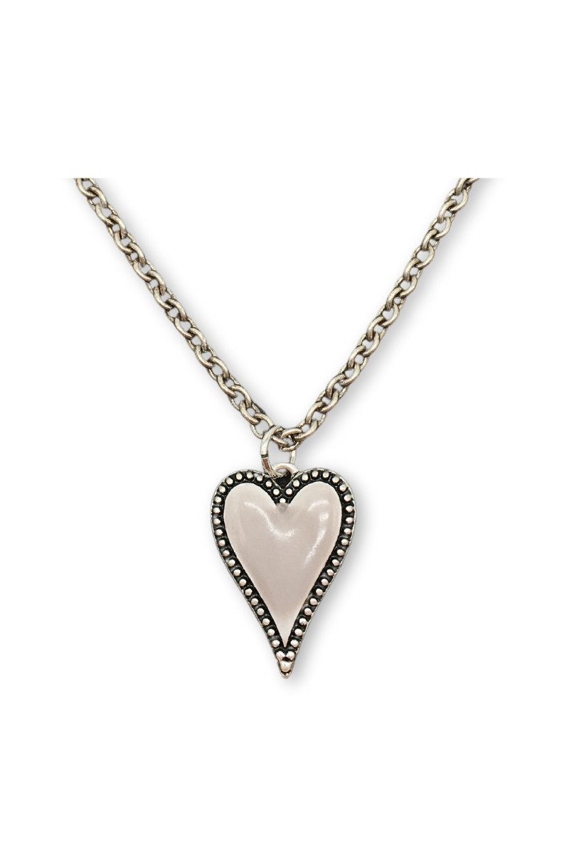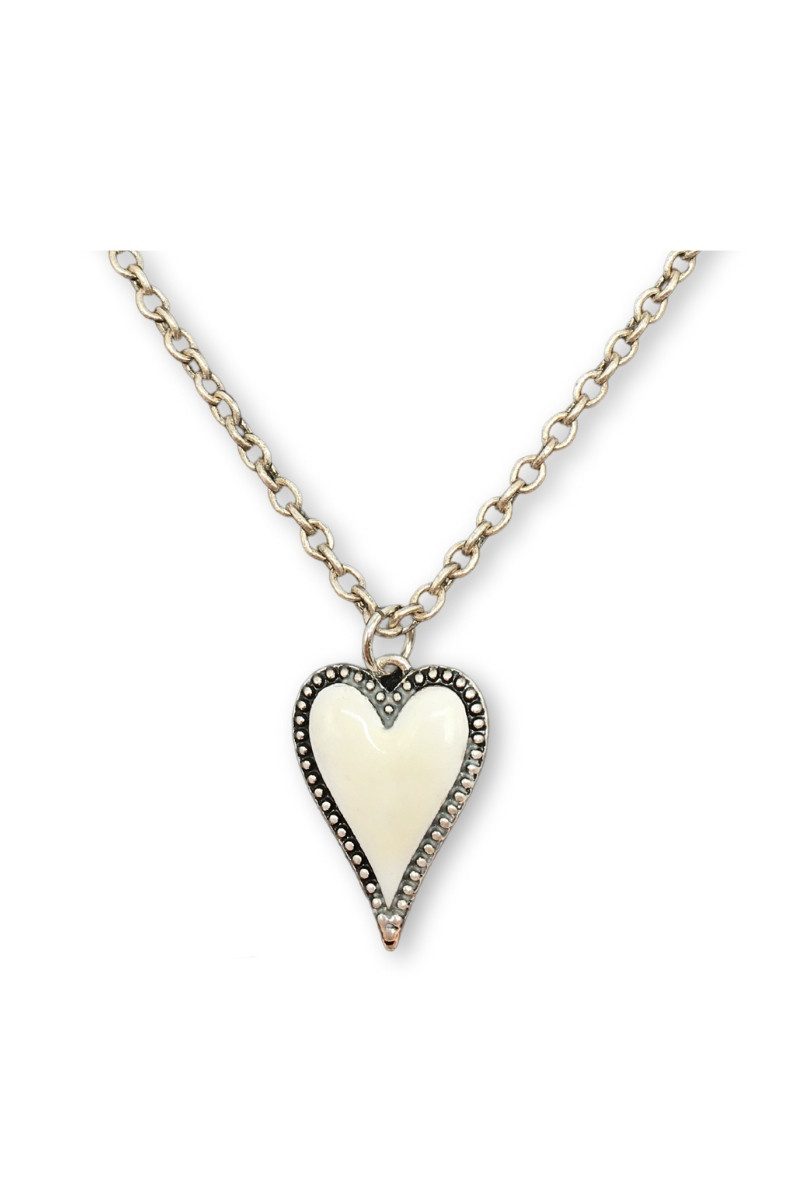 A Herzerl für di! Das herzige Trachten Collier Lotte ist eine romantische Kreation der Marke Luise Steiner und wundervoll kombinierbar mit romantischen Dirndln sowie Trachtenblusen. Die silberfarbene Kette besteht aus Metall und die Kettenglieder sind aus Halbrunddraht und Rundösen gefertigt. Der wunderschöne Herz-Anhänger mit filigraner Umrandung ist handbemalt. Das Verlängerungskettchen am Verschluss endet mit einem kleinen, schillernden Perlmutt-Anhänger mit dem Markennamen. Das Collier wurde handgefertigt in Österreich.