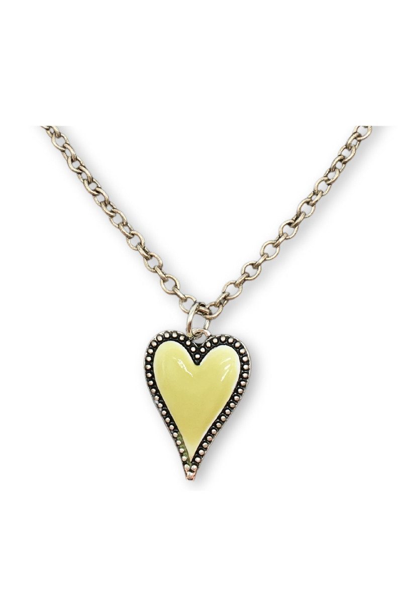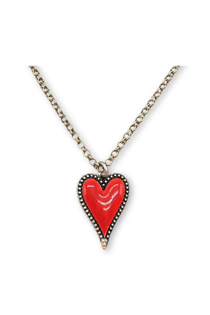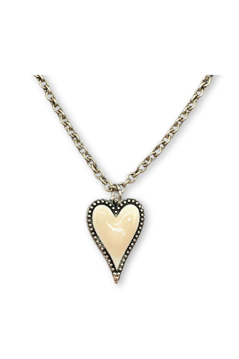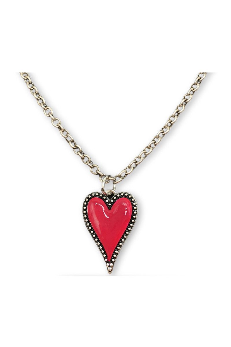 A Herzerl für di! Das herzige Trachten Collier Lotte ist eine romantische Kreation der Marke Luise Steiner und wundervoll kombinierbar mit romantischen Dirndln sowie Trachtenblusen. Die silberfarbene Kette besteht aus Metall und die Kettenglieder sind aus Halbrunddraht und Rundösen gefertigt. Der wunderschöne Herz-Anhänger mit filigraner Umrandung ist handbemalt. Das Verlängerungskettchen am Verschluss endet mit einem kleinen, schillernden Perlmutt-Anhänger mit dem Markennamen. Das Collier wurde handgefertigt in Österreich.