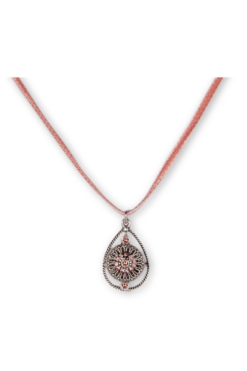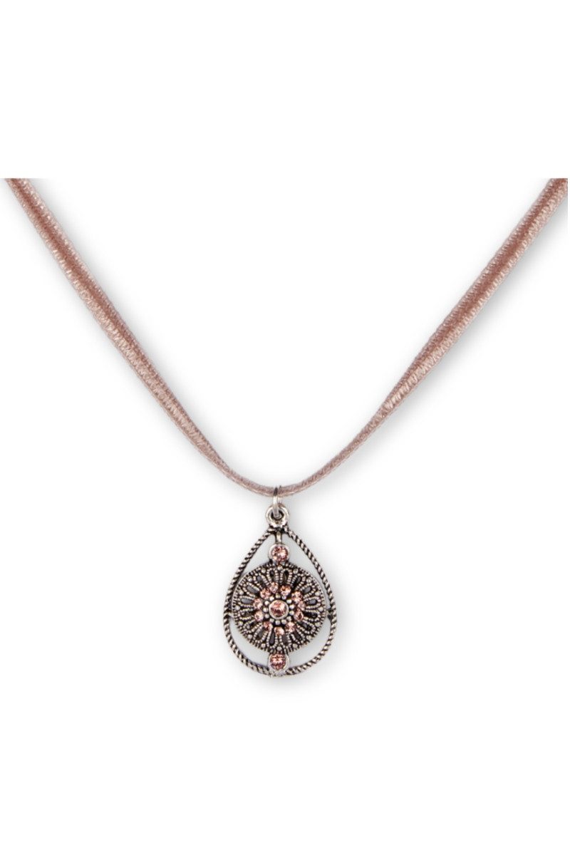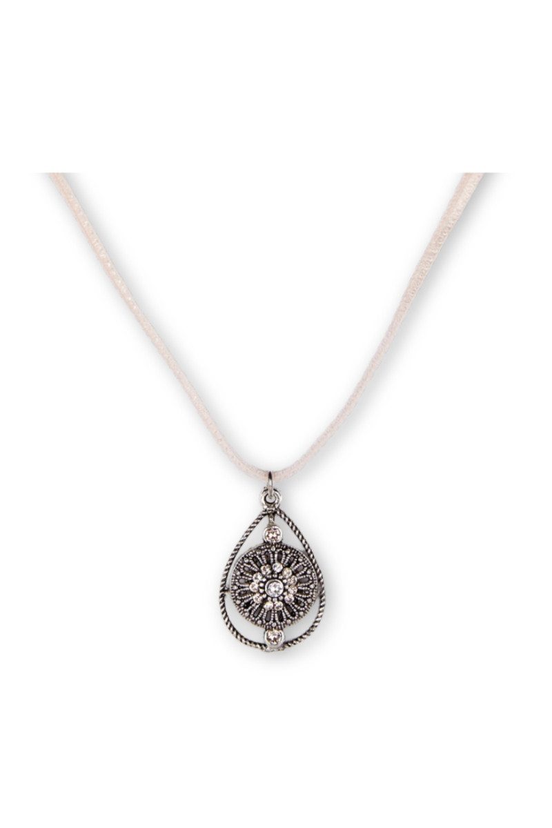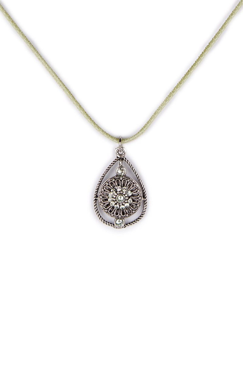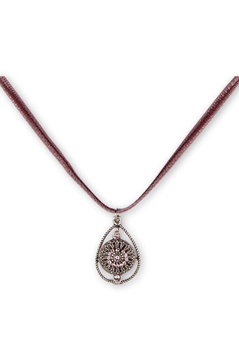 Die entzückende Trachtenkette Ulima, eine bezaubernde Kreation aus dem Hause Luise Steiner, besteht aus einem feinen Samtband und einem lieblichen Tropfen-Anhänger mit eingesetzter Ornamentik-Blüte im Ajour-Stil. Der altsilberne Anhänger ist filigran gemustert und auf dem Blütenstempel sowie ober- und unterhalb der Blüte sind funkelnde Strasssteinchen eingesetzt. Die Glitzersteine sind an die Farbe der Samtkordel angepasst. Der Verschluss mit kleinem Karabiner verfügt über ein Verlängerungskettchen. Die wundervolle Halskette wird in Österreich handgefertigt und ist in vielen Farben erhältlich.