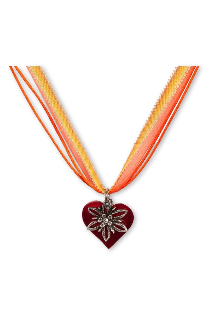 doppelter Anhänger aus glasiertem Herz und graziles Metalledelweiß mit Strasssteinmitte