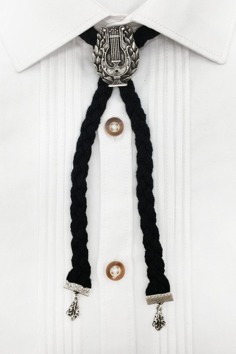 Dieses traditionelle Herrenwebband besteht aus weicher, geflochtener Merinowolle in Handweboptik. Es verfügt über kunstvollen Bandschieber, der mit einer Harfe und einem Ährenkranz verziert ist. Die Bandenden sind mit Metallhülsen und kleinen Eichenblättern veredelt. Das Webband ist REACH-konform und bietet somit Sicherheit und Qualität.