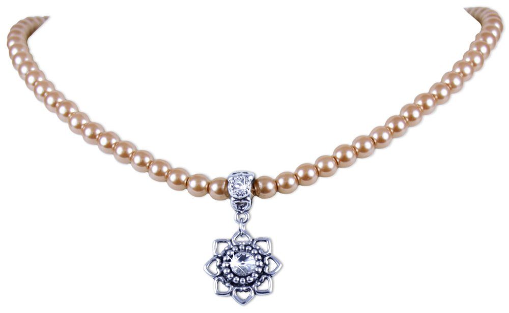 Die hochwertige Halskette ist mit einem frei hängenden Anhänger besetzt. Dieser besteht aus einer entzückenden Herzblüte mit einem kristallfarbenen Swarovski-Element. Die Perlen des Colliers haben eine perfekte Размер und liegen geschmeidig um den Hals. Sie haben die Wahl zwischen drei Perlenfarbvarianten: Bei Rosé haben die Perlen eine hauchzarte rosa Tönung. Die weißen Perlen haben einen fantastischen, minimal cremefarbenen Glanz und bei Nougat sind die Perlen in einem faszinierenden, cremig warmen Braunton. Einfach bezaubernd!