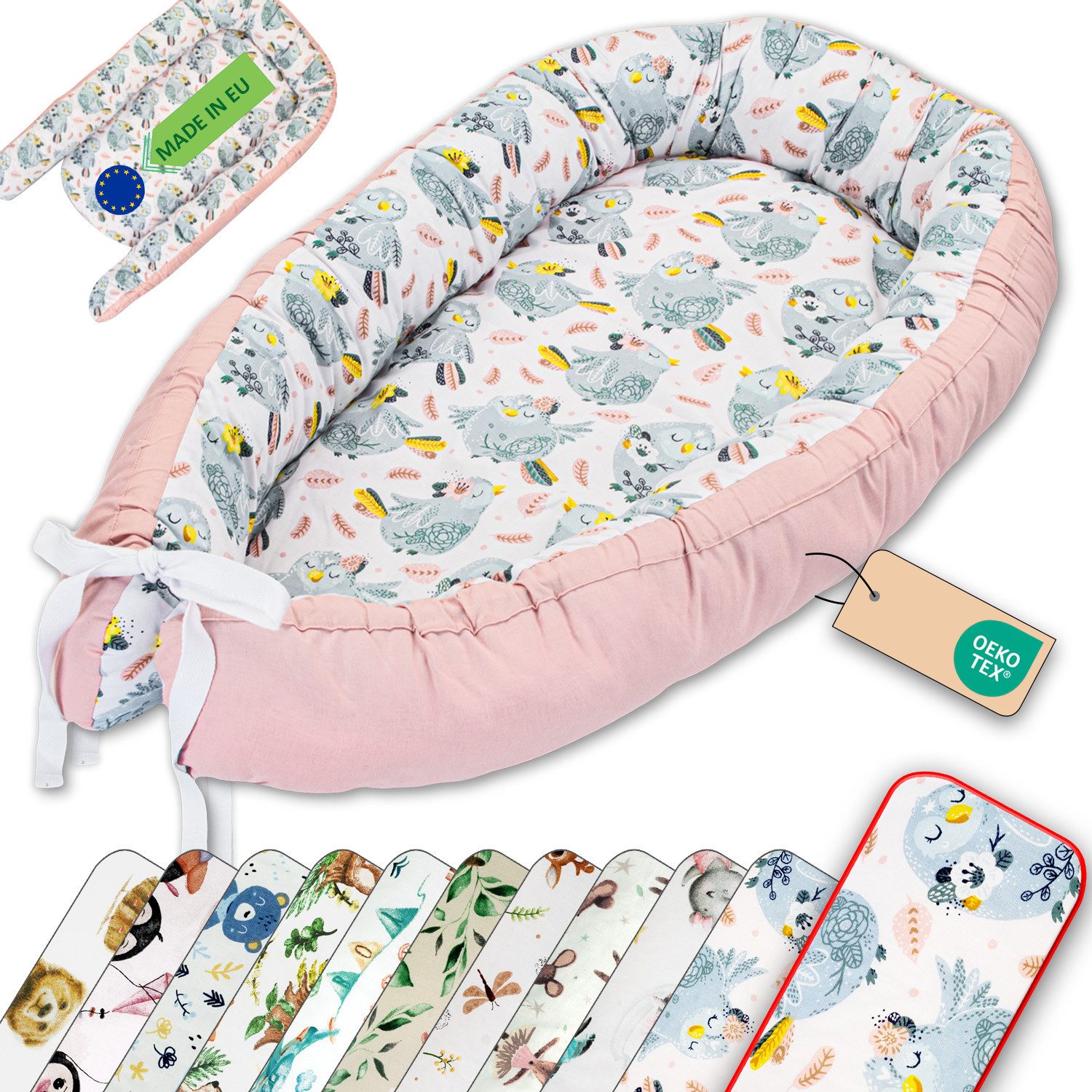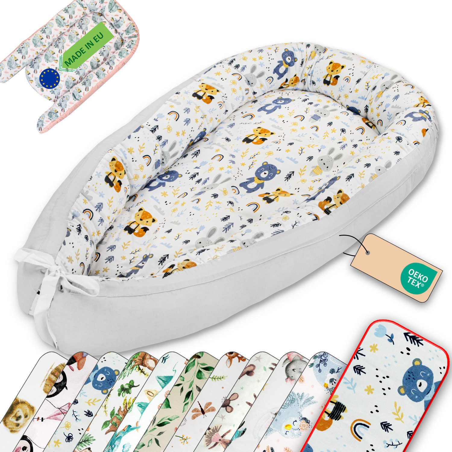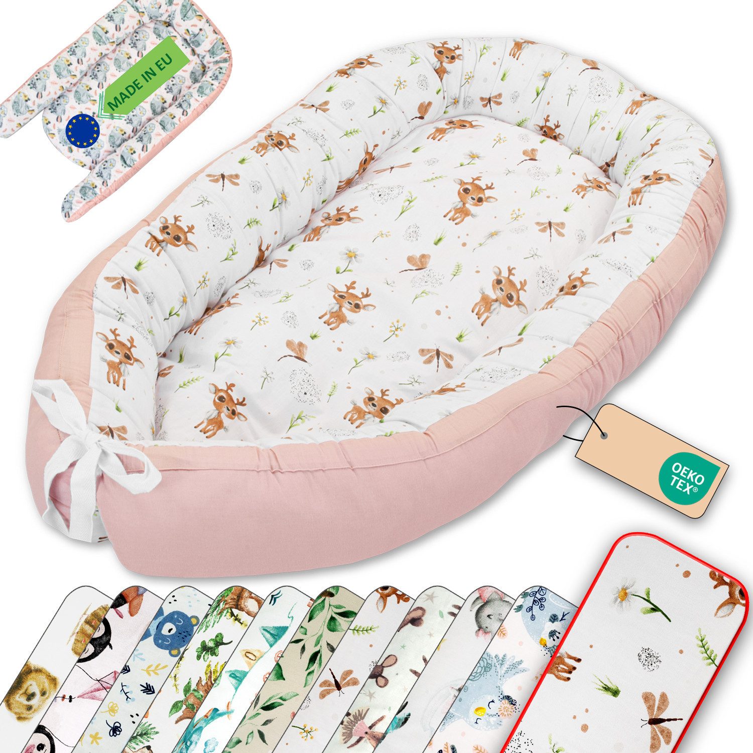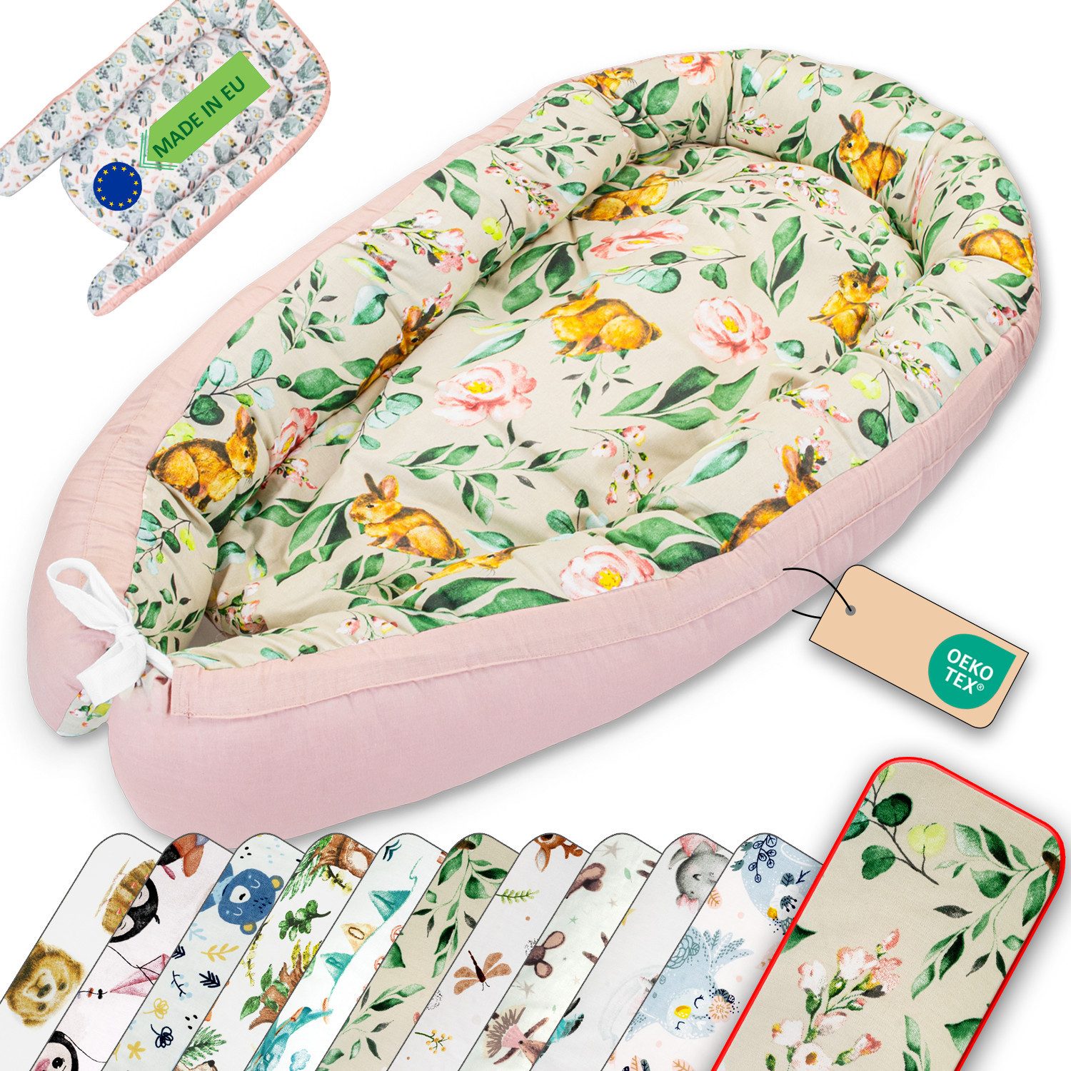 Das LULANDO Babynest ist der ideale Begleiter für die ersten Monate Ihres Babys. Es bietet Komfort, Sicherheit und Flexibilität, sowohl im Babybett als auch unterwegs. Perfekt für die Baby Erstausstattung!