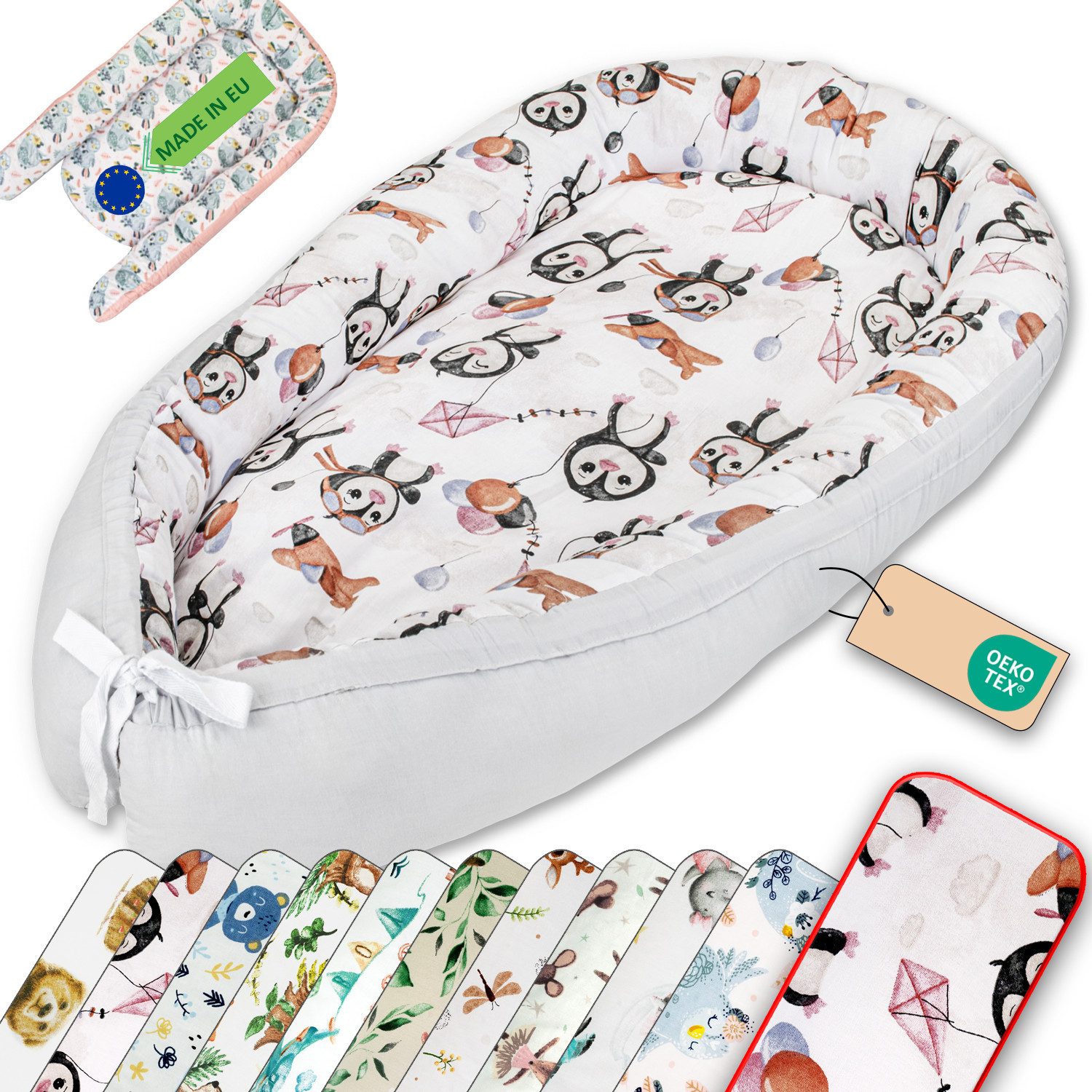 Das Kokon für Babys besteht aus 100 % Baumwolle, die sanft zur empfindlichen Babyhaut ist. Die atmungsaktive, antiallergische Füllung sorgt dafür, dass Ihr Baby bequem und sicher liegt. Das Babynest ist nach Öko-Tex Standard 100 (Klasse I) zertifiziert und bietet somit höchste Sicherheit und Qualität für die Erstausstattung Neugeborene.
