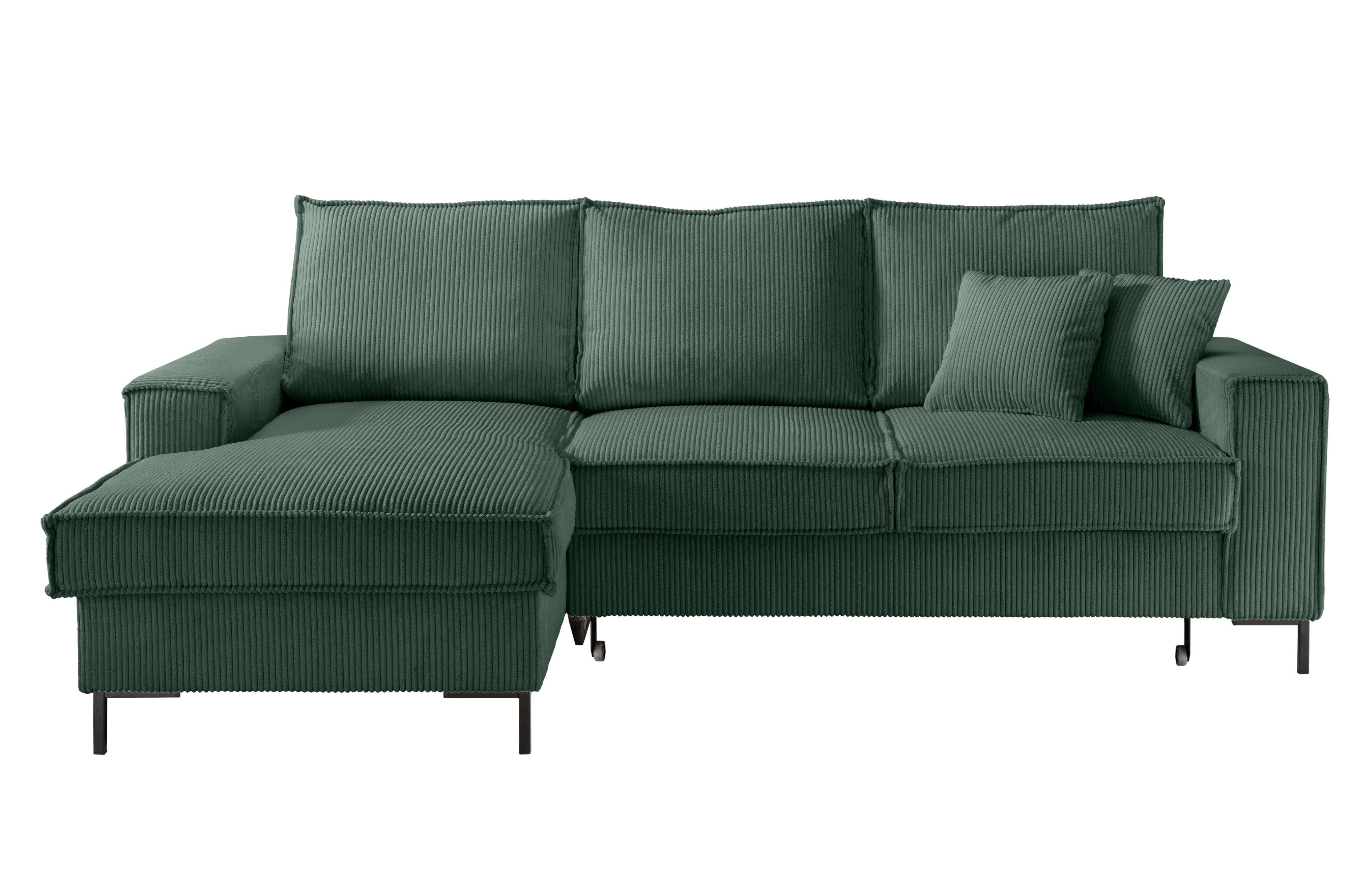 mit Bettfunktion und Bettkasten B240/T150/H92 cm, Liegefläche 125x198 cm, Wellenunterfederung, Récamiere links, Cord-Bezug in Grün