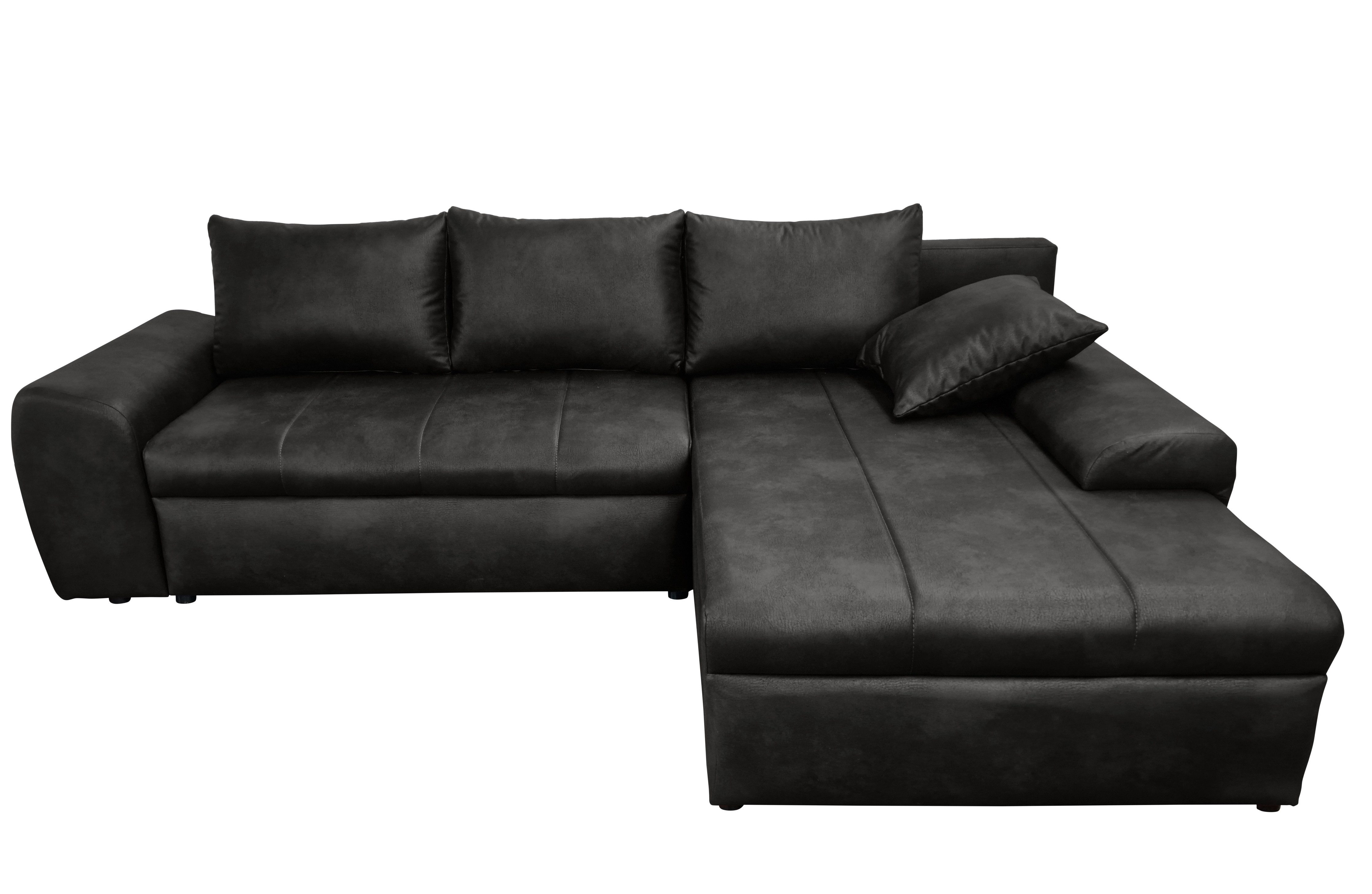 Wissenswertes | Das Ecksofa im angesagten Vintage-Look ist das perfekte Gästebett für Familie und Freunde und besitzt einen geräumigen Bettkasten. Dieses Modell hat seine Ottomane rechts (auch links erhältlich). Die Polsterung mit hochwertiger Wellenunterfederung und Schaumstoffpolsterung auf der Sitzfläche sowie mit Federkern im Rücken für die Schlaffunktion sorgt für einen angenehmen Sitz-, Liege- und Schlafkomfort.:Der Rücken ist echt bezogen, sodass das Sofa frei im Raum stellbar ist. |