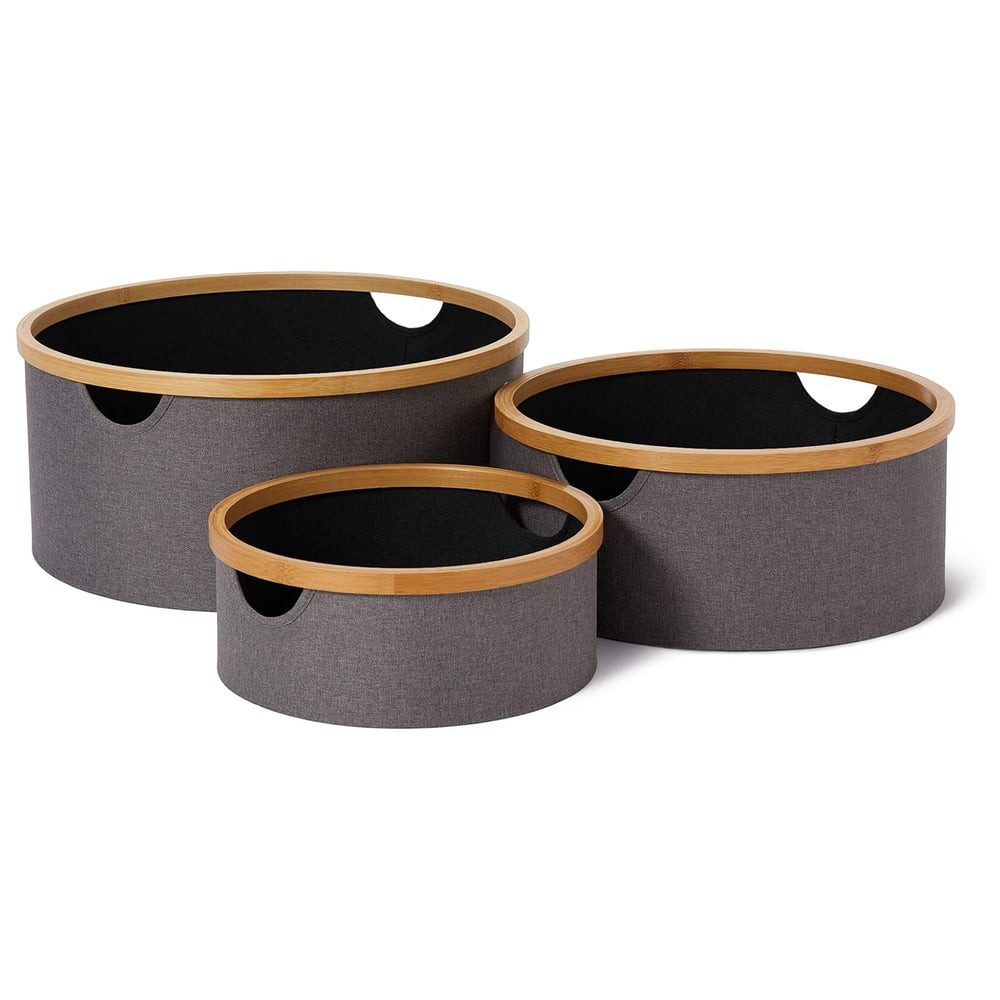 Lieferumfang | 1x Lumaland Aufbewahrungsbox ø 45 x 20 cm, 1x Lumaland Aufbewahrungsbox ø 38 x 16 cm, 1x Lumaland Aufbewahrungsbox ø 30 x 12 cm |
