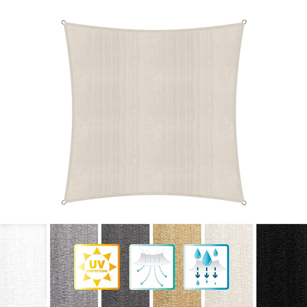 Das rechteckige Segel ist in verschiedenen Größenformaten erhältlich: Das Sonnensegel in Quadratform verfügt über die Maße 3 x 3 Meter.
