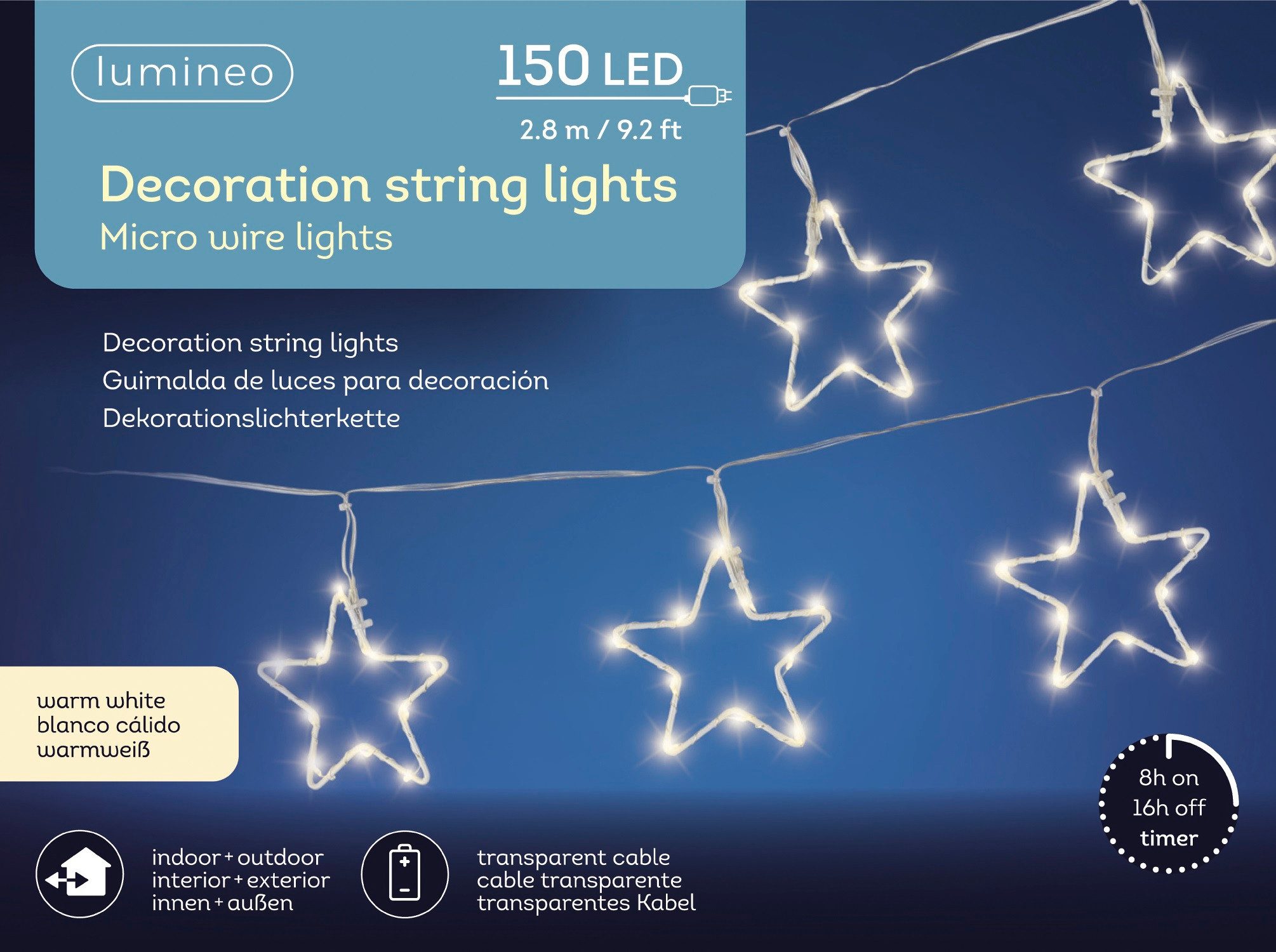 Der Stern-Lichtervorhang verfügt über 150 warm weiße Micro LEDs. Dank der praktischen Timer-Funktion lässt sich die Lichterkette ganz bequem steuern, sodass sie automatisch 8 Stunden lang eingeschaltet und 16 Stunden ausgeschaltet ist. Diese Funktion spart nicht nur Energie, sondern sorgt auch dafür, dass die Lichterkette jeden Tag zur gleichen Zeit erstrahlt. Die Beleuchtung bietet zudem eine großzügige 5 m lange Zuleitung. Mit dem IP44-Schutz ist sie Wetterbeständig und somit gegen Spritzwasser geschützt. Sie ist für den Innen- und Außenbereich geeignet. Die Beleuchtung wird Batteriebetrieben (nicht im Lieferumfang enthalten).