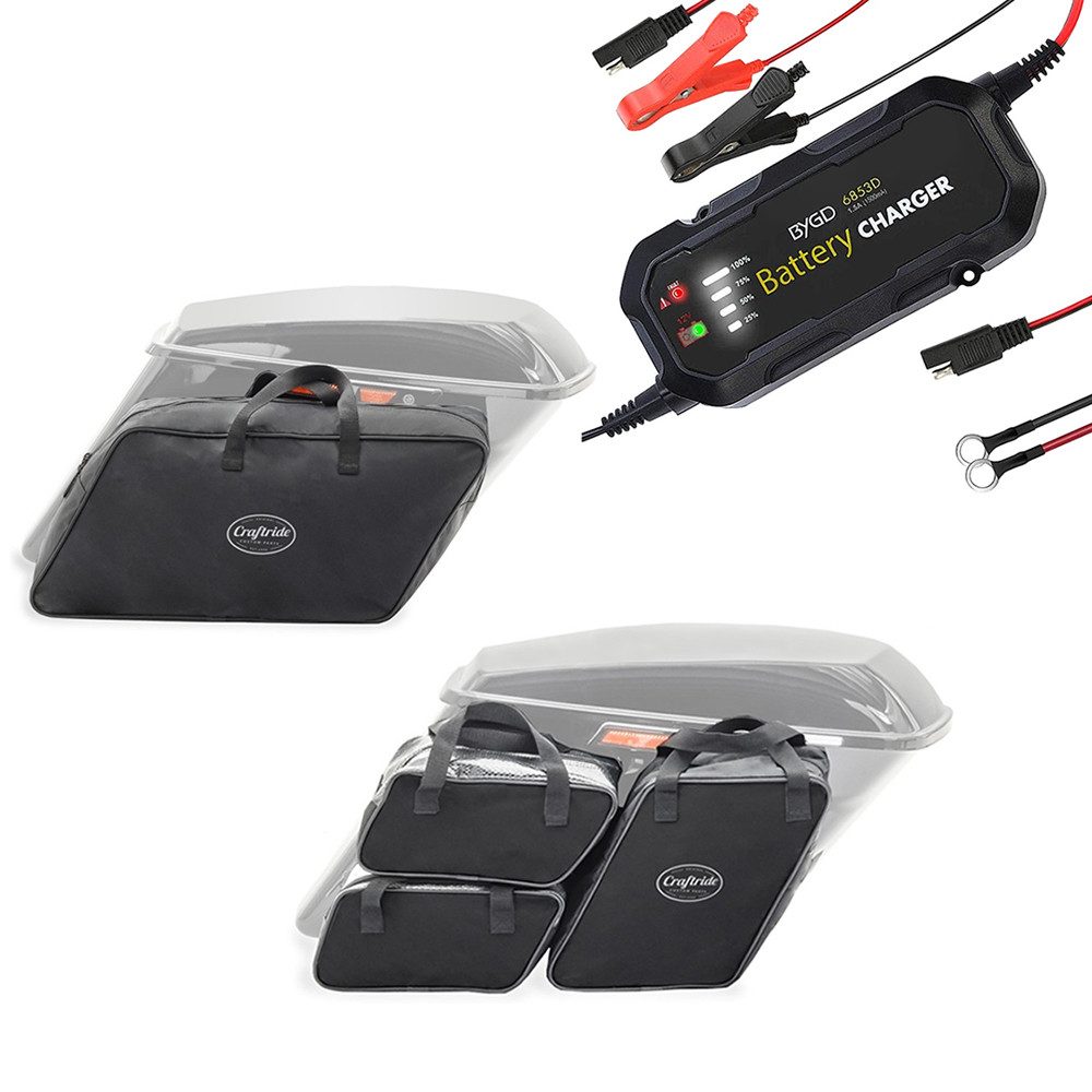 Halter Batterie Ladegerät 1.500mA + Koffer Innentaschen passend für Harley Da