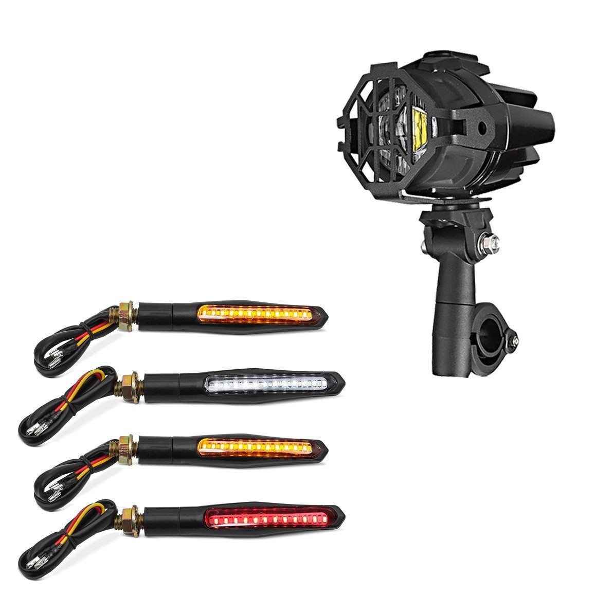 Halter Set: Motorrad LED Zusatzscheinwerfer mit Sturzbügel Halter und Schutzg