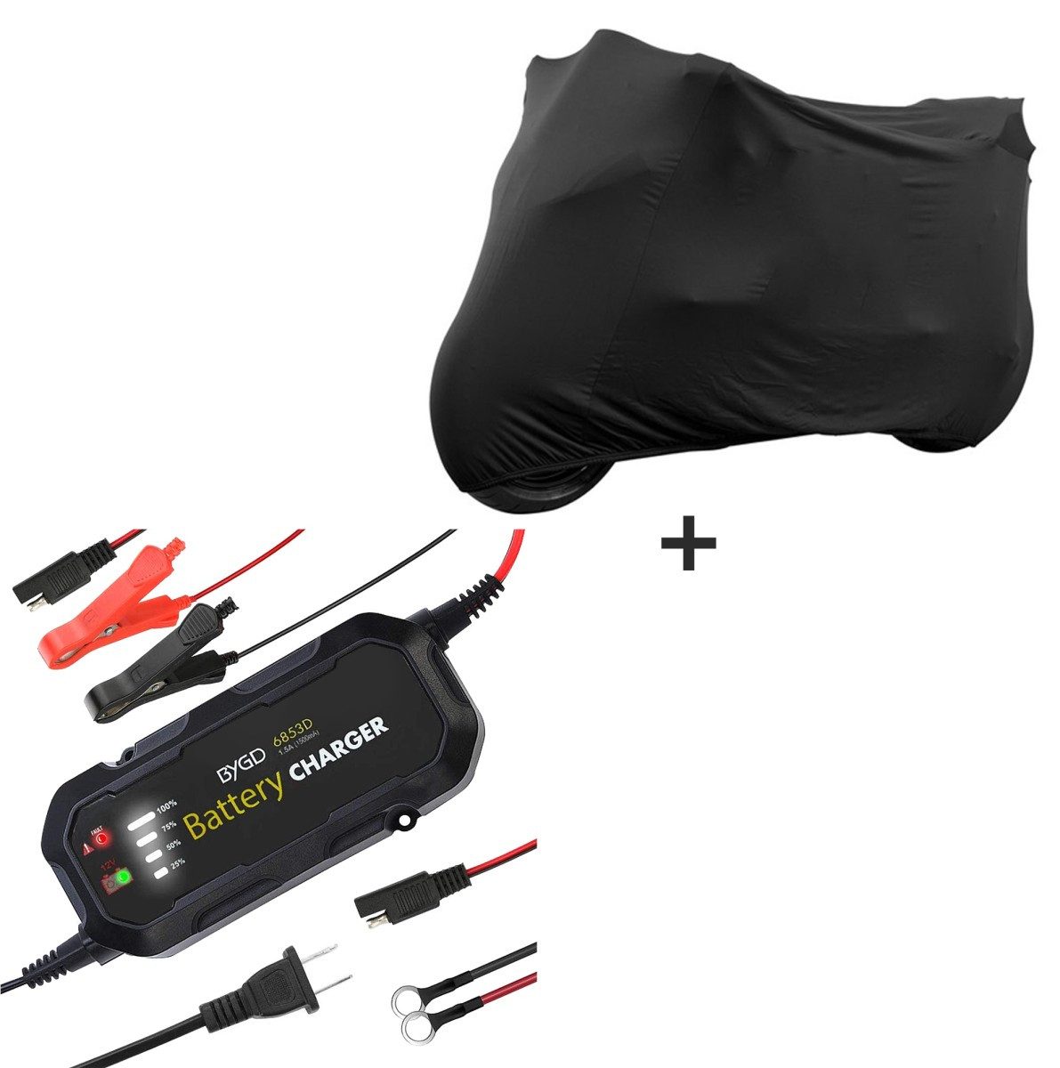 Set Motorrad Batterie Ladegerät + Abdeckplane Indoor M-L schwarz Autobatterie-Ladegerät