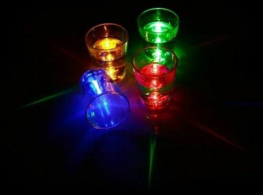 Tolle LED Schnapsgläser im 2er Set Sie erhalten pro Kauf 4 Schnapsgläser aus Kunststoff )2x2er Set Feiern sie ihre Feste bunt... Damit erregen Sie garantiert die Aufmerksamkeit Ihrer Gäste! Sobald Sie Flüssigkeit in das Glas füllen, fängt die im Glas integrierte LED mit ihrem Farbwechselspiel an. Hört die LED auf zu blinken, ist das Glas leer - Zeit, den Gästen nachzuschenken. Toller Party Gag für Jung und Alt! Lieferumfang/Produktdetails: - LED Schnapsglas, ca. 3,4/4,8x6cm, 24 gr. - Sie erhalten 2x2er Set (4 Schnapskrüge) - Inkl. 3 Knopfzellen (AG13), nicht austauschbar - Fassungsvermögen : 60 ml - Flüssigkeitsaktiviert - Material: Kunststoff