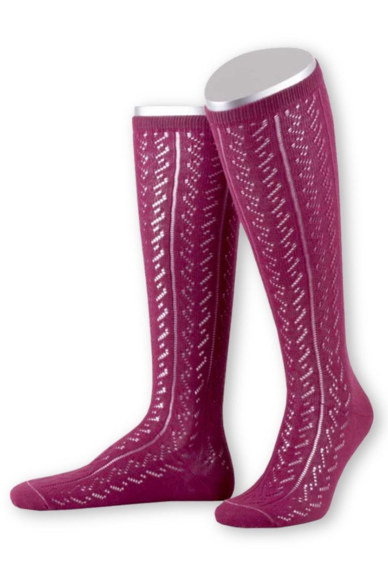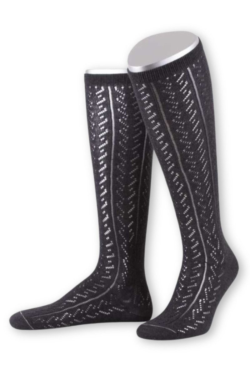 Diese feingearbeiteten Trachten Damenkniestrümpfe mit mit schickem Ajour-Strickmuster sind in vielen Farben erhältlich. Das traditionelle Lochmuster macht nicht nur zum Dirndl sondern auch zur feschen Lederhose was her! Sie sind mit einem hohen Bio-Baumwoll-Anteil gestrickt und sorgen mit ihrer weichen und elastisch Softqualität für ein angenehmes Tragegefühl. Für eine Langlebigkeit wurden Ferse und Spitze verstärkt. Dieses tolle Design mit feschem Muster ist eine Kreation der Traditionsmarke Lusana made in Germany.