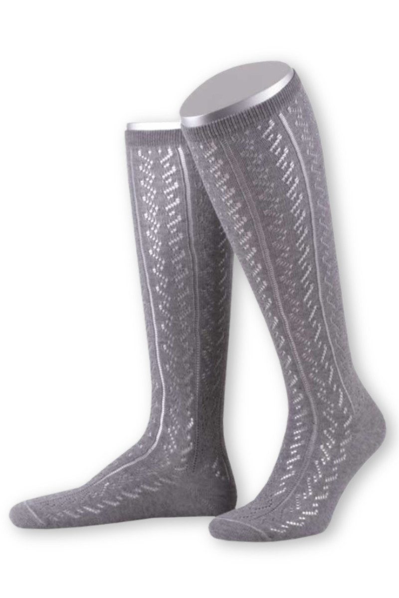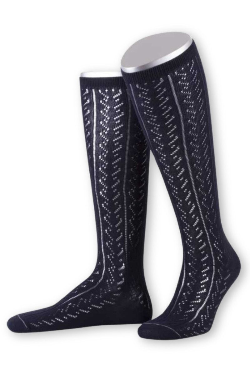 Diese feingearbeiteten Trachten Damenkniestrümpfe mit mit schickem Ajour-Strickmuster sind in vielen Farben erhältlich. Das traditionelle Lochmuster macht nicht nur zum Dirndl sondern auch zur feschen Lederhose was her! Sie sind mit einem hohen Bio-Baumwoll-Anteil gestrickt und sorgen mit ihrer weichen und elastisch Softqualität für ein angenehmes Tragegefühl. Für eine Langlebigkeit wurden Ferse und Spitze verstärkt. Dieses tolle Design mit feschem Muster ist eine Kreation der Traditionsmarke Lusana made in Germany.