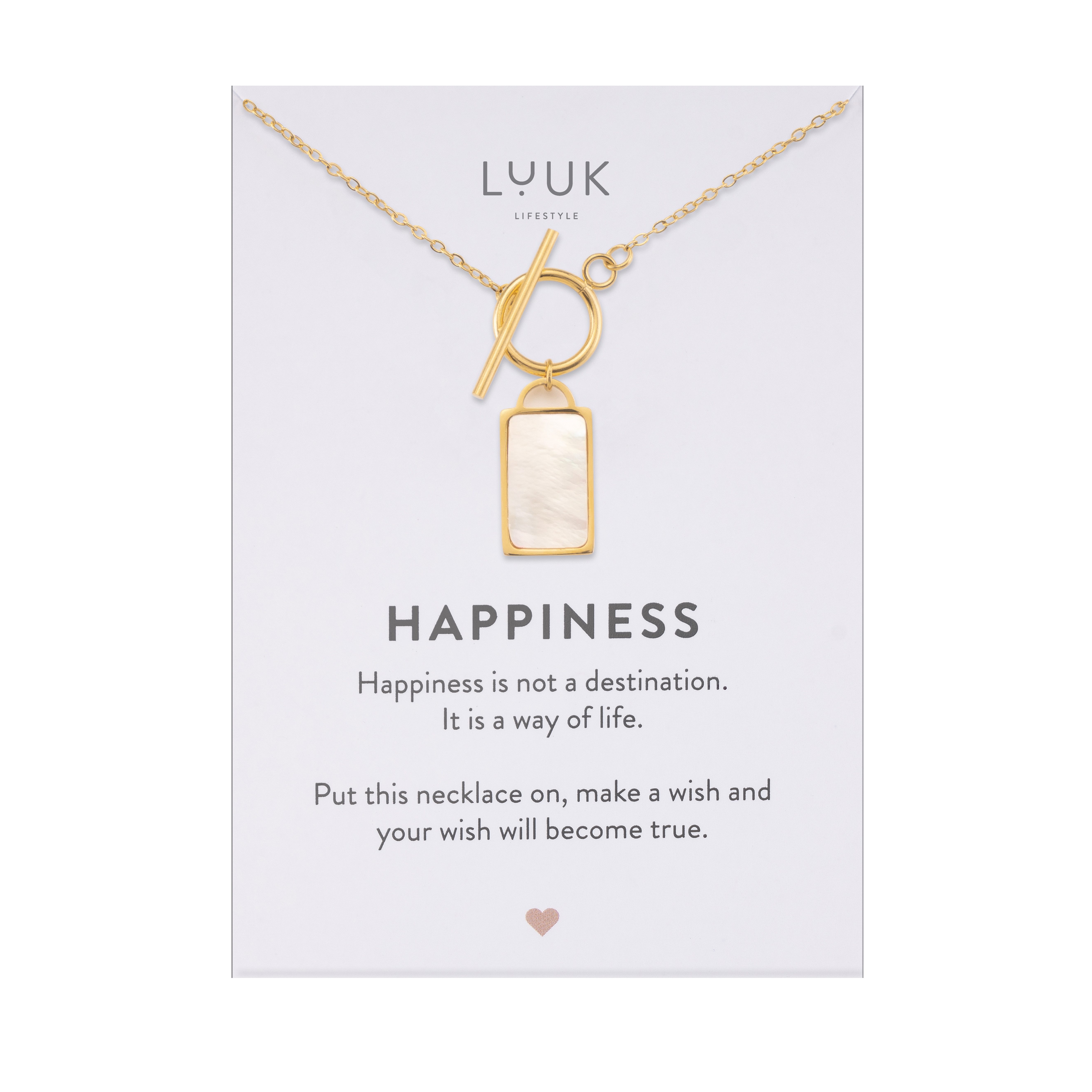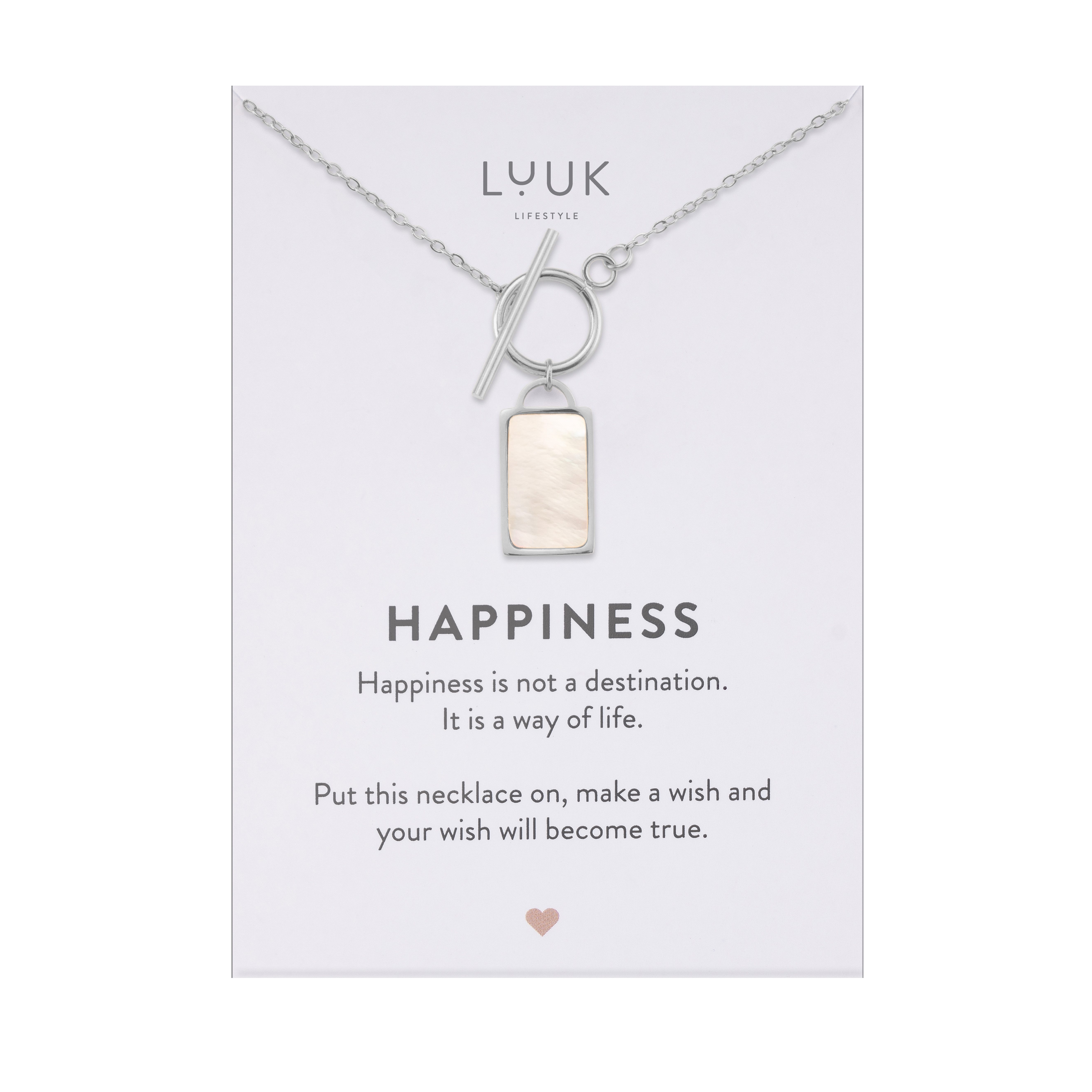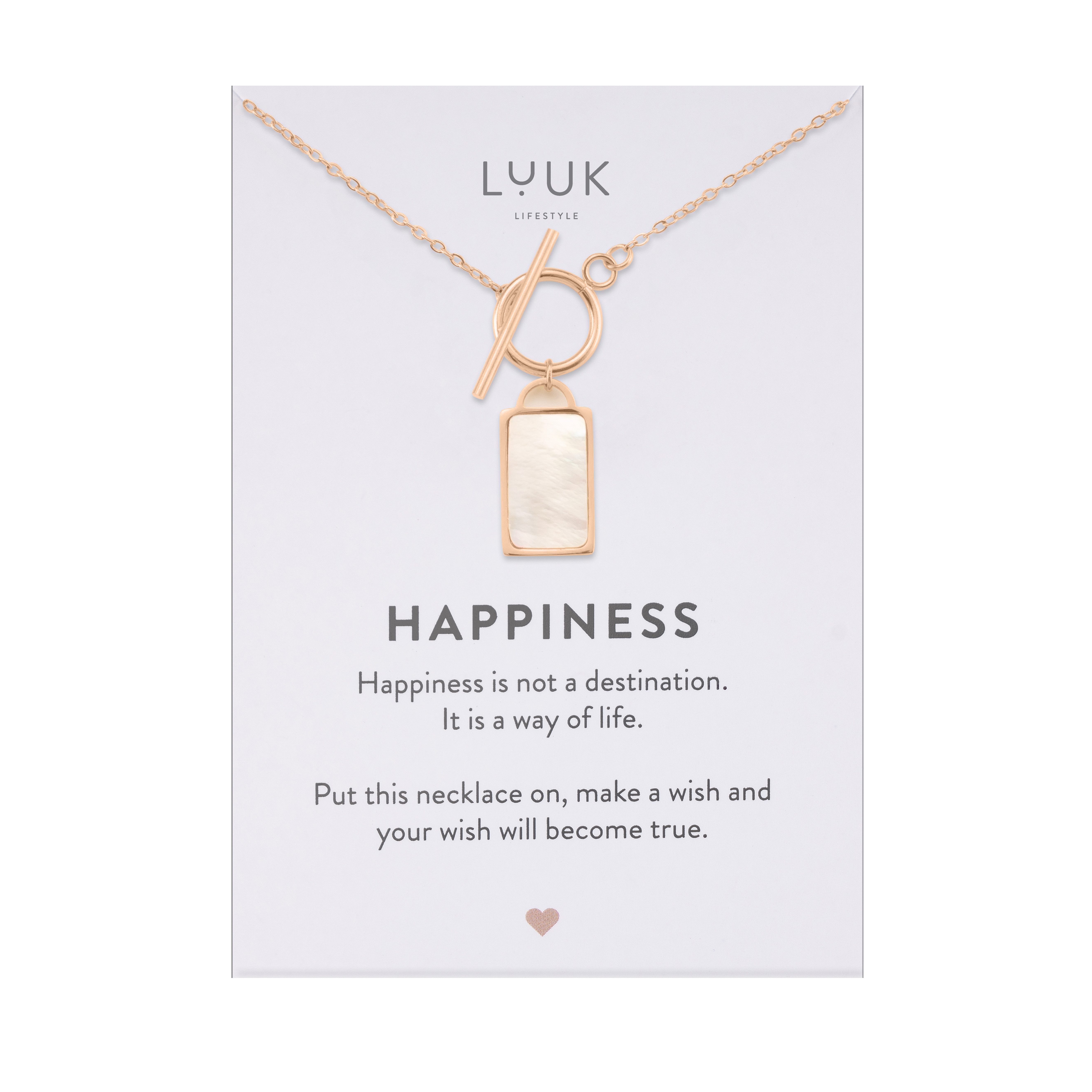 Filigrane Kette in schlichtem Design mit Pearl Rechteck Anhänger. Verfügbar in den Farben Gold, Silber und Roségold inklusive HAPPINESS Spruchkarte. Die Halskette wirkt feminin, stilvoll und ist vielseitig kombinierbar.