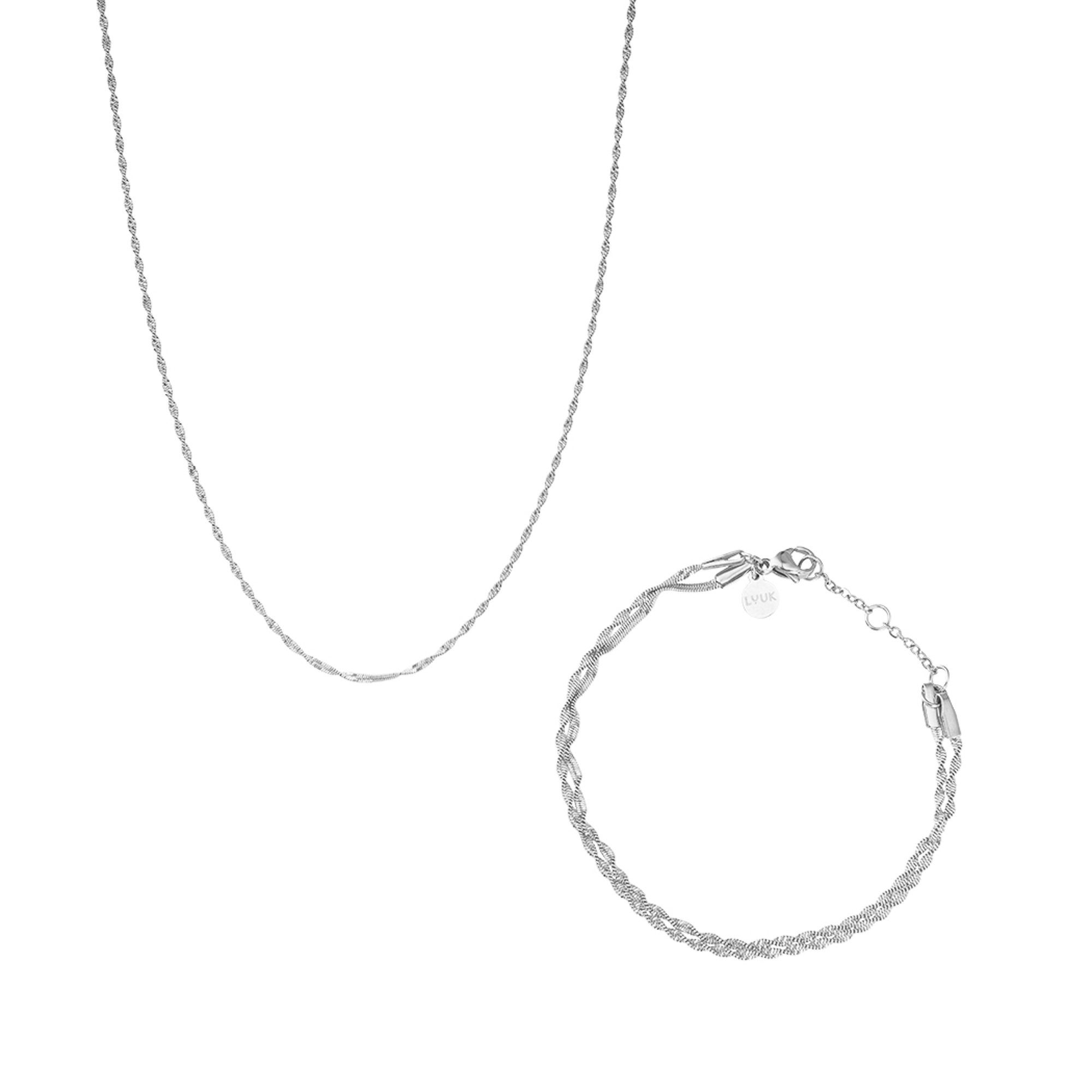 Wunderschöne Kombination aus moderner Rope Halskette und passendem Armband im angesagten Layer Look. Verfügbar in den Farben Gold, Silber und Roségold inklusive schöner Schmuckbox. Der Schmuck wirkt feminin, stilvoll und ist vielseitig kombinierbar.