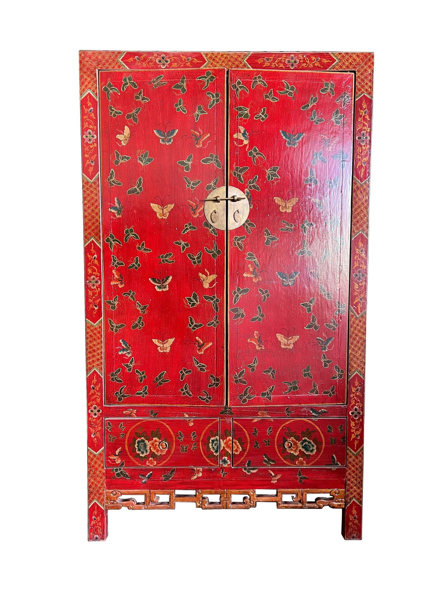 Erweitern Sie Ihr Zuhause mit einem Möbelstück, das kunstvolle Handwerkskunst und praktische Funktionalität in perfekter Harmonie vereint. Bestellen Sie jetzt den chinesischen Kleiderschrank mit kultureller Bemalung in Handarbeit aus Massivholz angefertigt und erleben Sie die Schönheit und Qualität, die nur handgefertigte Möbel bieten können.