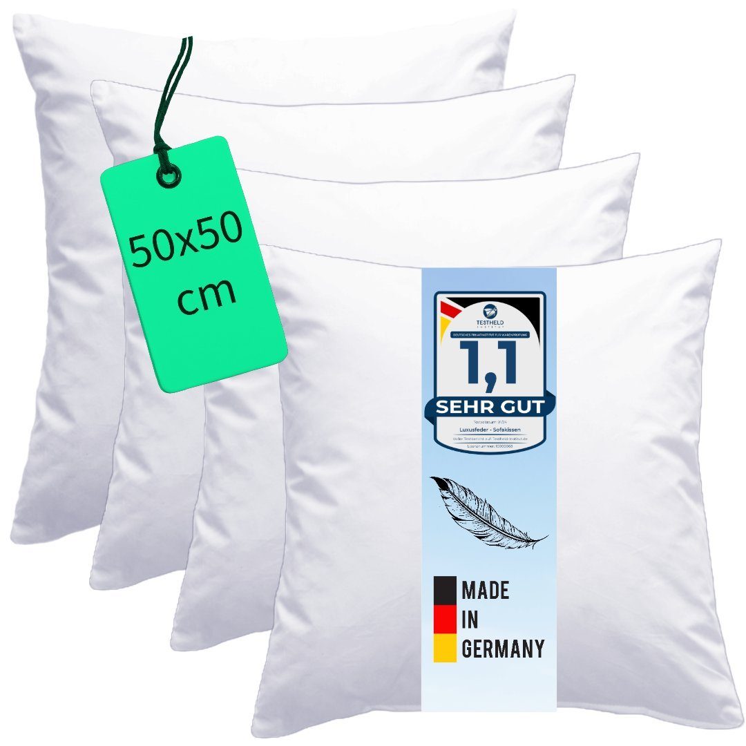 Sehr kuschelige, weiche, gemütliche und anschmiegsame Kissenfüllung 50x50 cm mit einer Füllung aus Daunen-Federgemisch (ca. 80% Daunen, 20% Federchen). Dieses Daunenkissen ist hervorragend für Ihre Kissenhüllen geeignet und dank der weichen Füllung sehr gemütlich und vielseitig einsetzbar, ob im Schlafzimmer, Kinderzimmer, Gästezimmer oder Wohnzimmer. Die Daunen haben einen Anteil von Federchen von ca. 20%, somit eignen sie sich ideal als Füllung für Kleinkissen, die kuschelig sein sollen, aber auch eine gewisse Stützkraft aufweisen sollen. Es ist zu beachten, dass sich die angegebene Размер immer auf das ungefüllte Inlett bezieht - durch das Befüllen wird das Kissen aufgebauscht und ist vom Maß stets etwas kleiner. Diese Stützkraft ist nur durch einen Anteil von Federn zu erreichen. Unsere Produkte werden geltenden deutschen und europäischen Normen in einem deutschen Handwerksbetrieb hergestellt. Auch in folgenden Größen erhältlich: 30x40 cm 40x40 cm 30x50 cm 45x45 cm 40x60 cm 50x70 cm