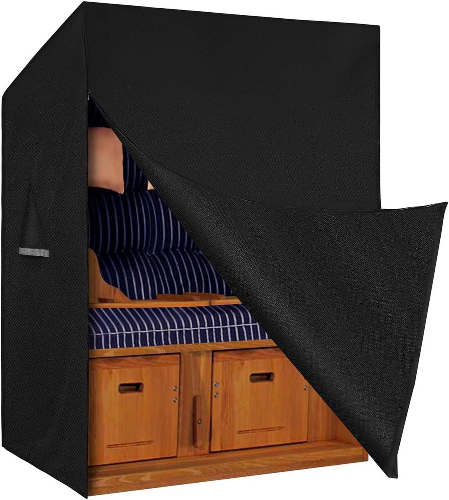 Die Strandkorb Abdeckung verfügt über zwei Reißverschlüsse für ein einfaches Öffnen und Спрятать sowie zwei Gummizüge, um einen sicheren Halt zu gewährleisten. Die Belüftungsöffnungen sorgen für eine gute Luftzirkulation und verhindern die Bildung von Schimmel. Das strapazierfähige 600D Oxford-Gewebe ist wasserdicht, UV-beständig und langlebig, was eine langfristige Nutzung der Abdeckung gewährleistet.