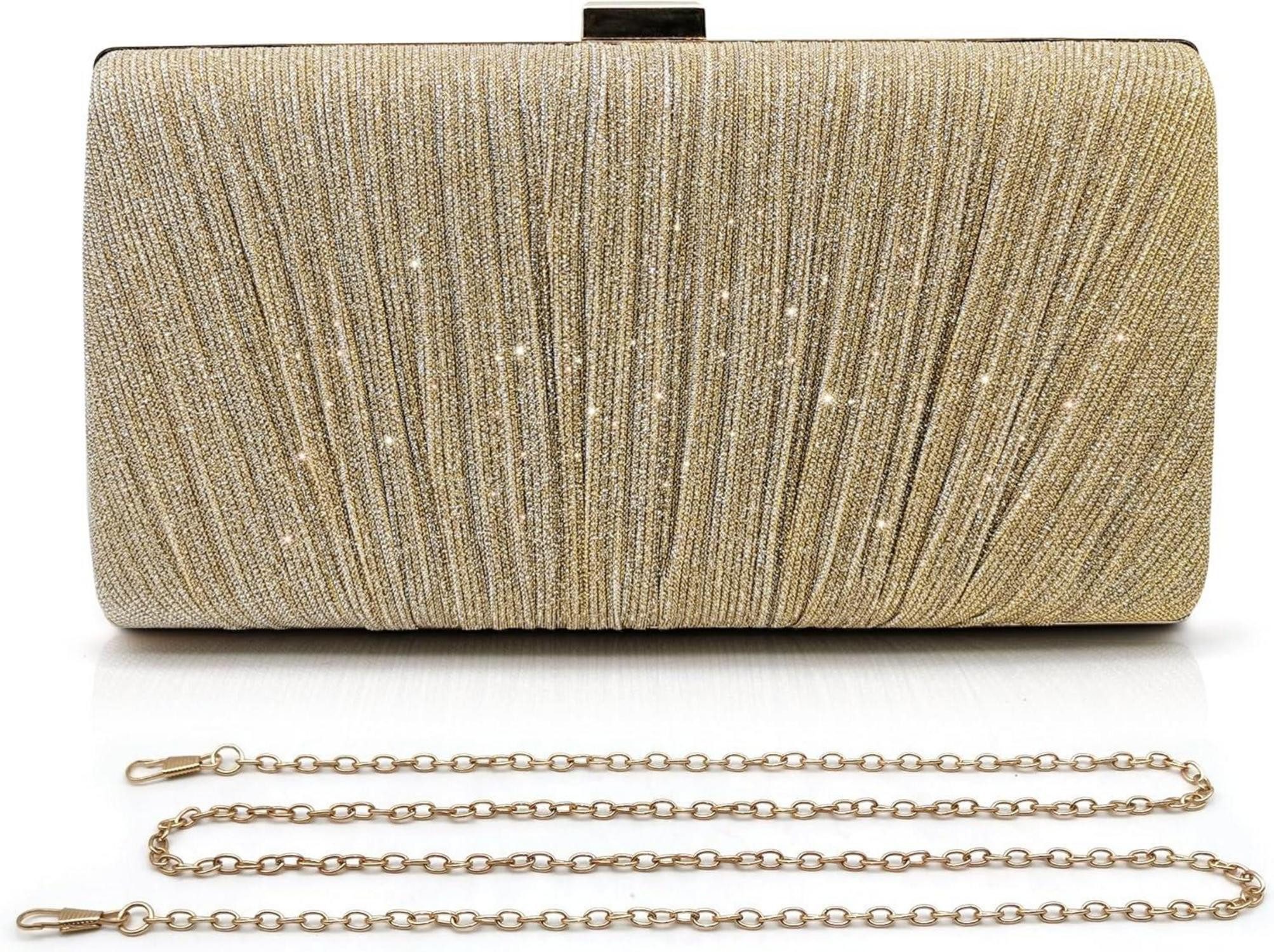 Mit Maßen von 8.7"x5.1"x2" (22*13*5cm) bietet diese Abendtasche genügend Platz für all Ihre täglichen Gegenstände wie Handy, Lippenstift, Taschentücher und Schlüssel. Sie kommt mit einem abnehmbaren Griff und einer langen Kette, so dass Sie sie als Clutch, Handtasche oder Umhängetasche tragen können. Das zeitlose Design macht sie zu einem vielseitigen Accessoire, das jedes Outfit aufwertet.