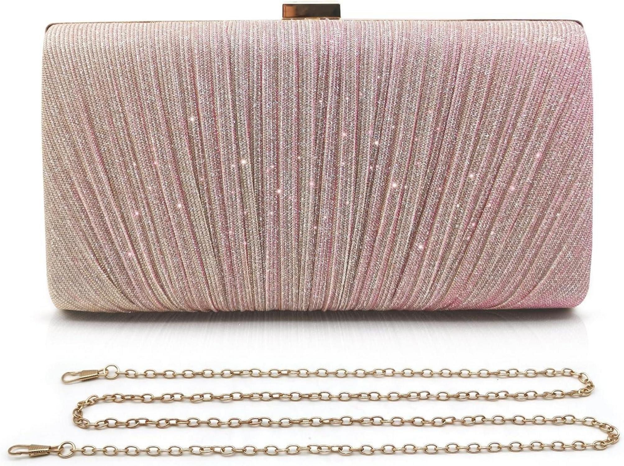 Hergestellt aus hochwertigem Glitzermaterial und zarter Hardware, strahlt diese Clutch Luxus aus. Der abnehmbare Griff und die lange Kette bieten flexible Tragemöglichkeiten, sodass Sie die Tasche je nach Anlass als Clutch, Handtasche oder Umhängetasche verwenden können.