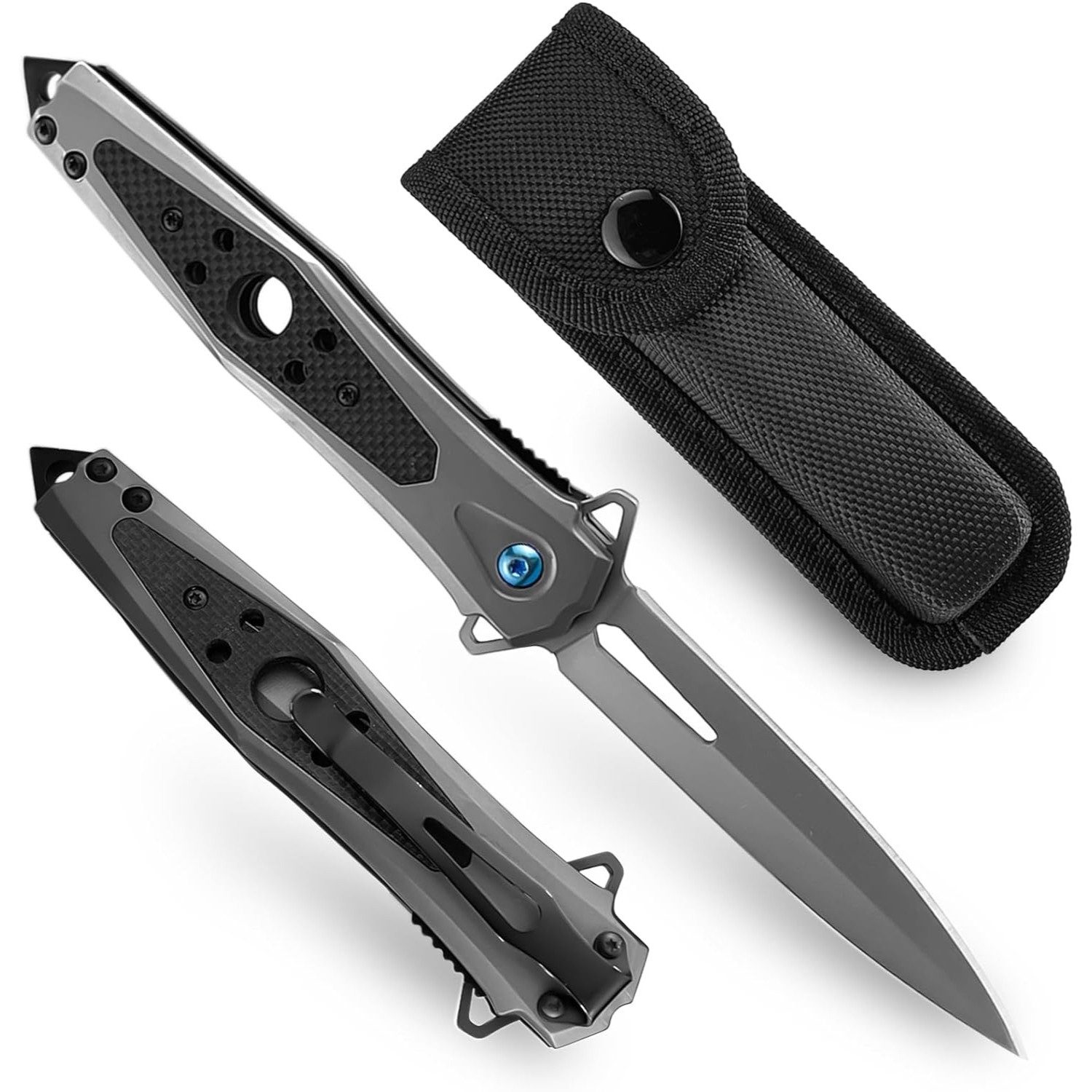 Klappmesser,Einhandmesser mit G10-Griff und Nylonscheide, Taschenmesser mit Taschenclip,für Camping, Wandern, Geschenk für Männer, Grau - Das ohmonlyhoo Folding Knife ist die perfekte Wahl für alle, die ein starkes und zuverlässiges Taschenmesser benötigen. Die Edelstahlklinge und der G10 Griff bieten die optimale Kombination aus Haltbarkeit und Tragekomfort. Mit dem Liner Lock Design können Sie die Klinge sicher sichern und schnell öffnen, wenn nötig. Der Taschenclip ermöglicht ein einfaches Tragen an der Tasche oder am Gürtel, während die mitgelieferte Nylonscheide zusätzlichen Schutz bietet.Dieses Outdoor-Messer eignet sich hervorragend für Campingausflüge, Wanderabenteuer und den täglichen Gebrauch. Ob Sie Boxen öffnen, Seile schneiden oder Lebensmittel vorbereiten müssen, dieses Klappmesser ist stets einsatzbereit. Mit seinem kompakten Design und der Vielseitigkeit ist es ein praktisches Werkzeug für jede Situation.Machen Sie einem besonderen Mann in Ihrem Leben eine Freude, indem Sie ihm dieses hochwertige Taschenmesser als Geschenk überreichen. Egal ob für den Vater, Bruder, Freund oder Ehemann, dieses Messer wird garantiert geschätzt und oft zum Einsatz kommen. Investieren Sie in Qualität und Funktionalität mit dem ohmonlyhoo Folding Knife.