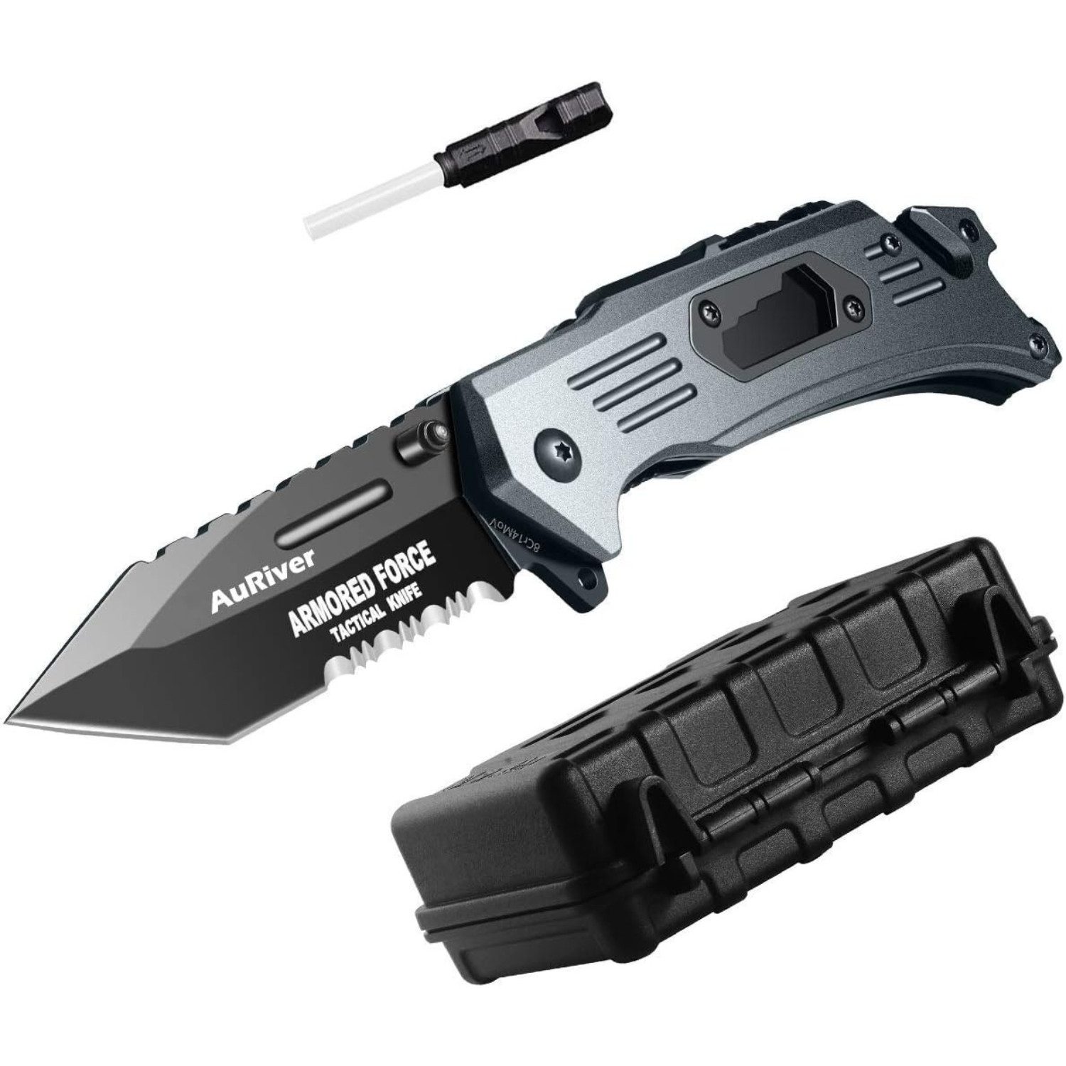 Gute Qualität: Das Klappmesser verfügt über eine scharfe Überzugstitaniumklinge aus rostfreiem Edelstahl, die mühelos schneidet. Der Sägezahn auf der Klinge ermöglicht ein glattes Durchtrennen von Seilen und Magnesiumstäben. Egal ob beim Campen, Wandern oder anderen Outdoor-Aktivitäten - dieses Taschenmesser ist ein Must-have für alle Abenteuerlustigen.