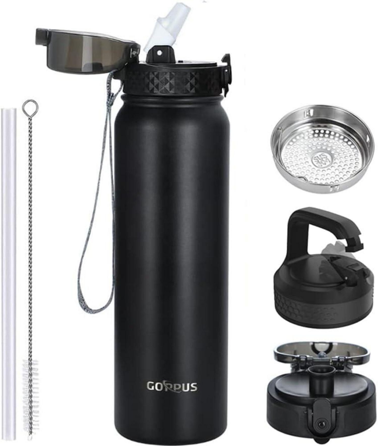Die GOPPUS 1L/32oz Thermosflasche mit Strohhalm ist die ideale Wahl für alle, die einen nachhaltigen und gesunden Lebensstil fördern möchten. Mit einem Fassungsvermögen von 1 Liter/32 Unzen bietet diese doppelschichtige Edelstahl-Trinkflasche nicht nur ausreichend Platz für Ihre Lieblingsgetränke, sondern hält sie auch stundenlang kühl oder warm.