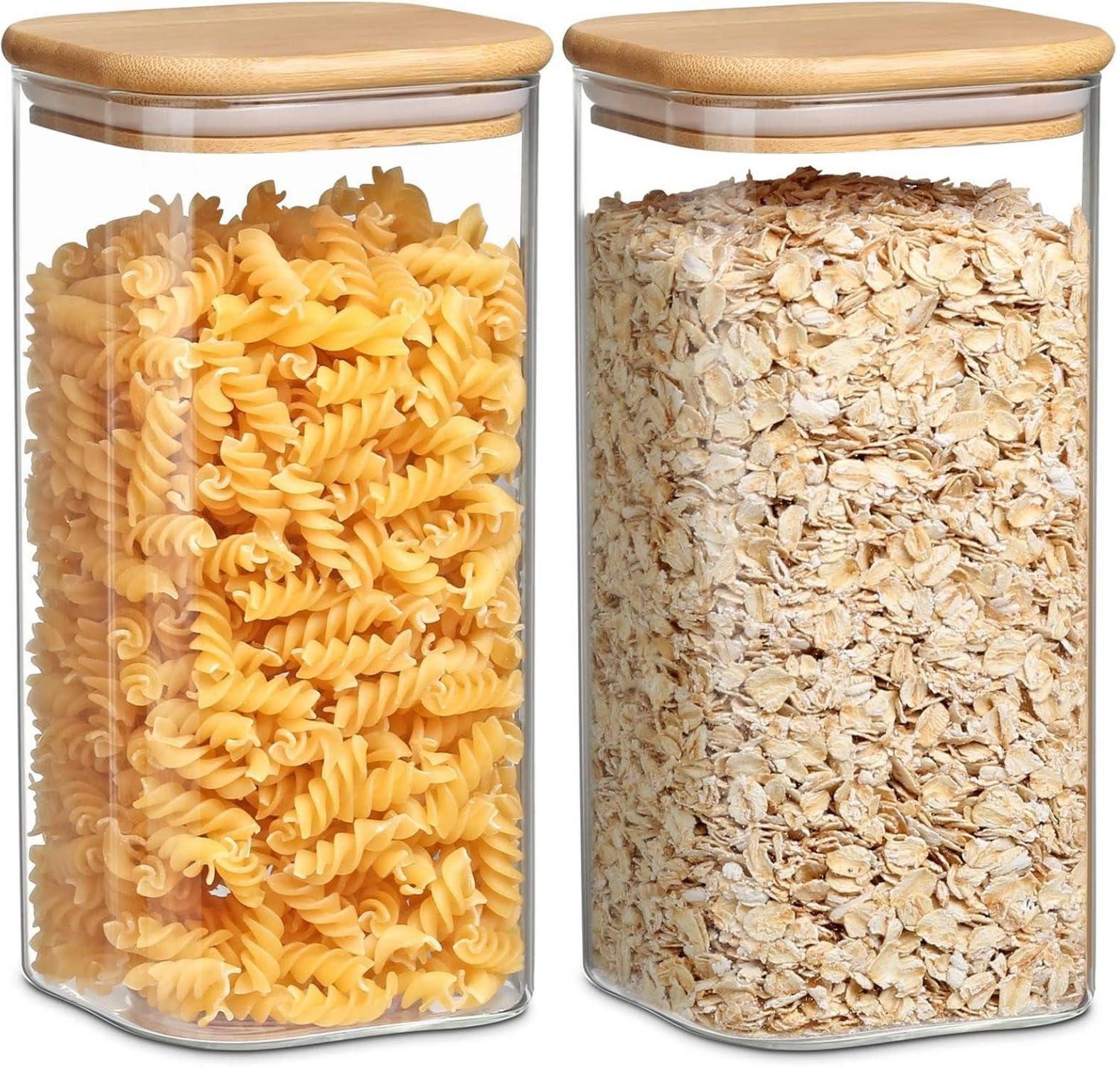 Die YUEYEE Vorratsgläser mit Deckel sind die perfekte Lösung, um Ihre Lebensmittel frisch und geordnet zu halten. Das Set enthält 2 Glasbehälter mit einem Fassungsvermögen von jeweils 1600ml, ideal für die Aufbewahrung von Nudeln, Bohnen, Kaffee, Reis, Keksen und mehr.