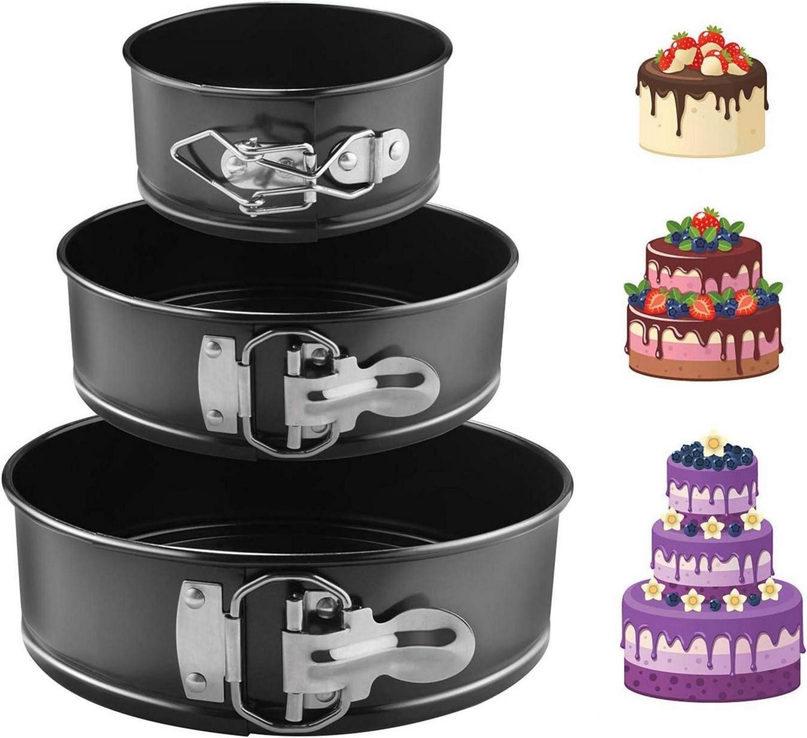 Die EKKONG Kuchenform Rund Inspiration Springform Cake Pans sind die perfekte Wahl, um Ihre Backkünste auf ein neues Level zu heben. Mit diesem Set können Sie traumhafte dreistufige Kuchen für Geburtstage, Partys, Hochzeiten und mehr zaubern. Die drei verschiedenen Größen (10.2cm, 17.8cm, 22.9cm) ermöglichen es Ihnen, eine Vielzahl von Kuchen zu backen und sorgen für langanhaltenden Backspaß.