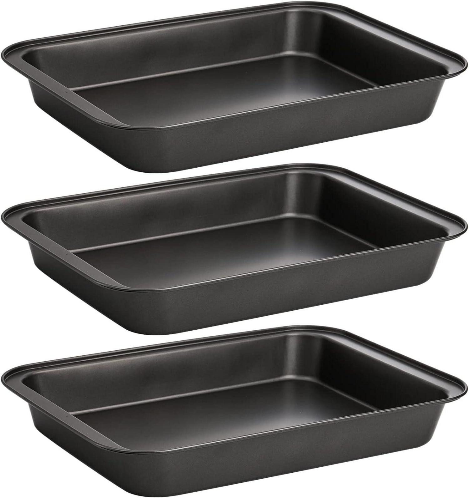 Deep Oven Backblech: Lyellfe Backblech ist tiefer als andere Bleche, völlig genug, um Ihre Leckereien zu halten, ohne Ihren Ofen zu überlaufen oder zu verschmutzen, so dass Sie während des Backvorgangs sicher sein können. Unsere Backform ist aus robustem, galvanisiertem Karbonstahl gefertigt, was sie zu einem zuverlässigen Plektrum macht, langlebig, antihaftbeschichtet, rostet nicht leicht und verzieht sich nicht, verbessert Ihren Backgenuss. Paket enthält 3 rechteckige Ofen-Backbleche, jedes misst 33 cm L x 22,9 cm B x 5,1 cm H, geeignet für den individuellen Gebrauch oder ineinander stapelbar für geteiltes Kochen, um Ihre größeren Partyveranstaltungen zu gestalten.