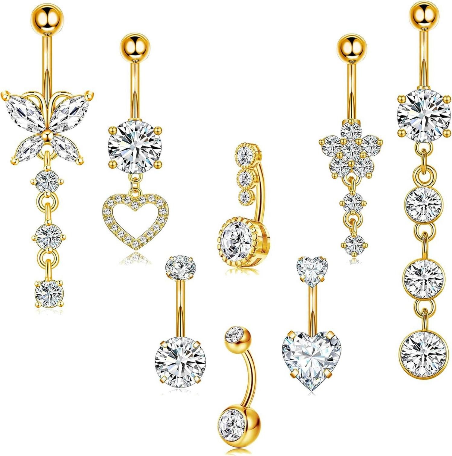 Mit verschiedenen Verzierungen wie Blumen, Schmetterlingen, Liebesanhängern und Strasssteinen bietet Ihnen dieses Set die Möglichkeit, Ihren Look je nach Anlass anzupassen. Ob für den Alltag oder besondere Anlässe, diese Bauchnabelpiercings sind ein echter Hingucker.