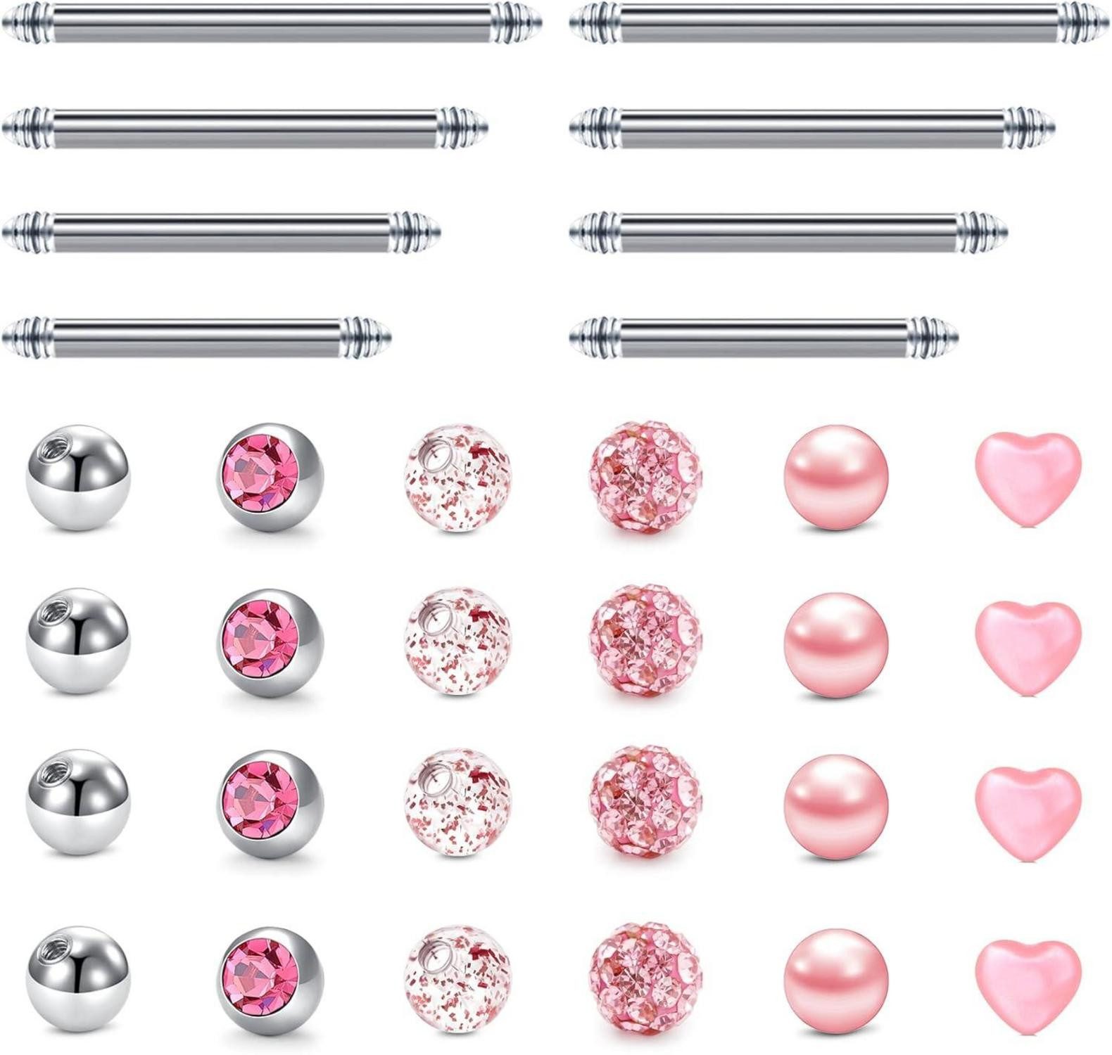 Das Briana Williams Zungenpiercing Brustwarzenpiercing Set bietet Ihnen die Möglichkeit, Ihre Piercing-Kollektion mit hochwertigen Stücken zu erweitern. Jedes Piercing wurde sorgfältig aus Edelstahl gefertigt und bietet eine Stabstärke von entweder 18G (1.0mm) oder 20G (0.8mm). Der Durchmesser der Ringe beträgt entweder 8mm oder 10mm, um Ihnen eine perfekte Passform und Tragekomfort zu gewährleisten.