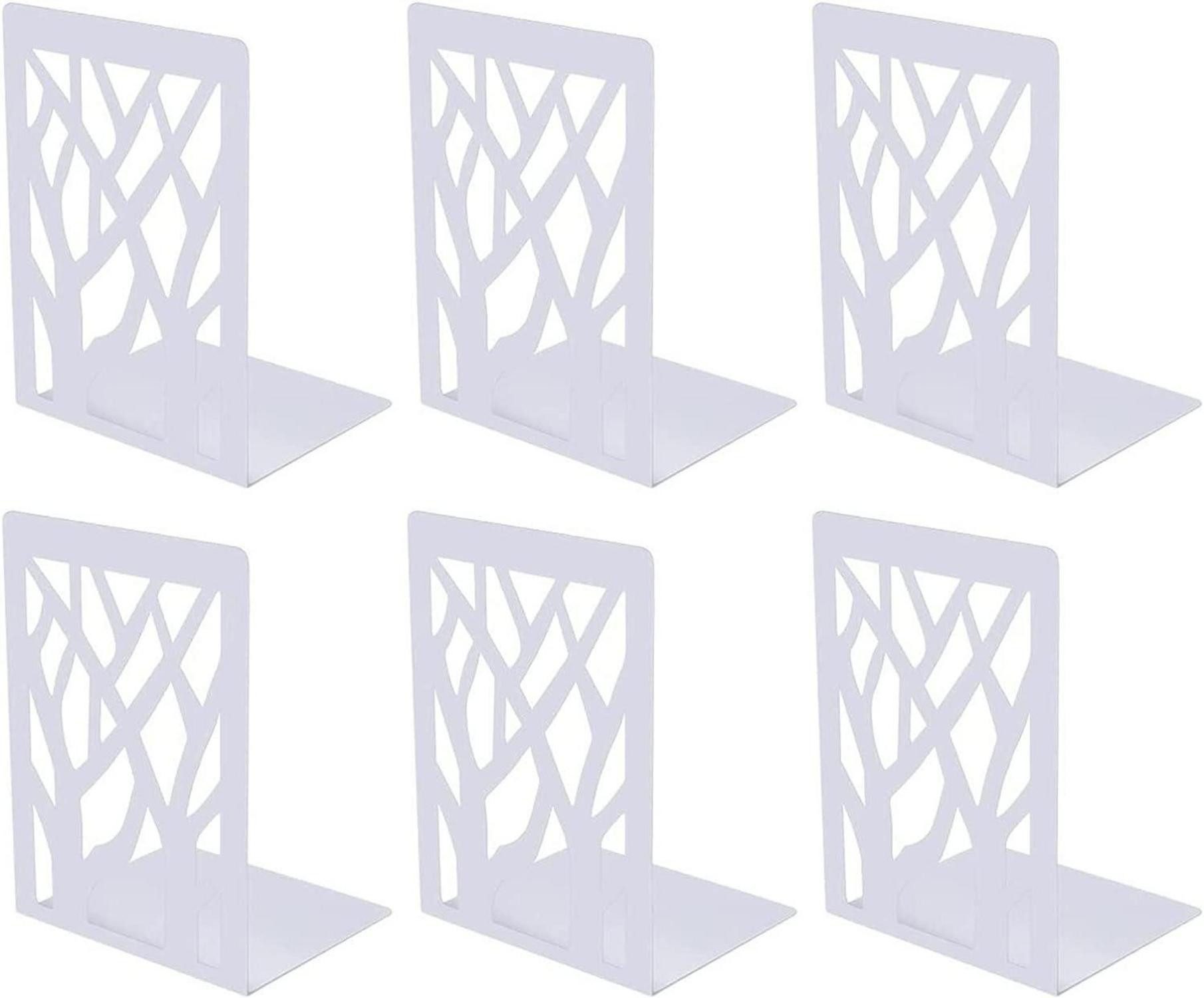 Die 3 Paar weißen Buchstützen aus Metall sind praktisch und dekorativ zugleich. Sie sind das perfekte Geschenk für Freunde, Familienmitglieder, Kollegen oder jeden, der Bücher liebt. Mit ihrem eleganten Design in Form von Baum- und Blattkunst fügen sie sich harmonisch in jede Wohnumgebung ein.