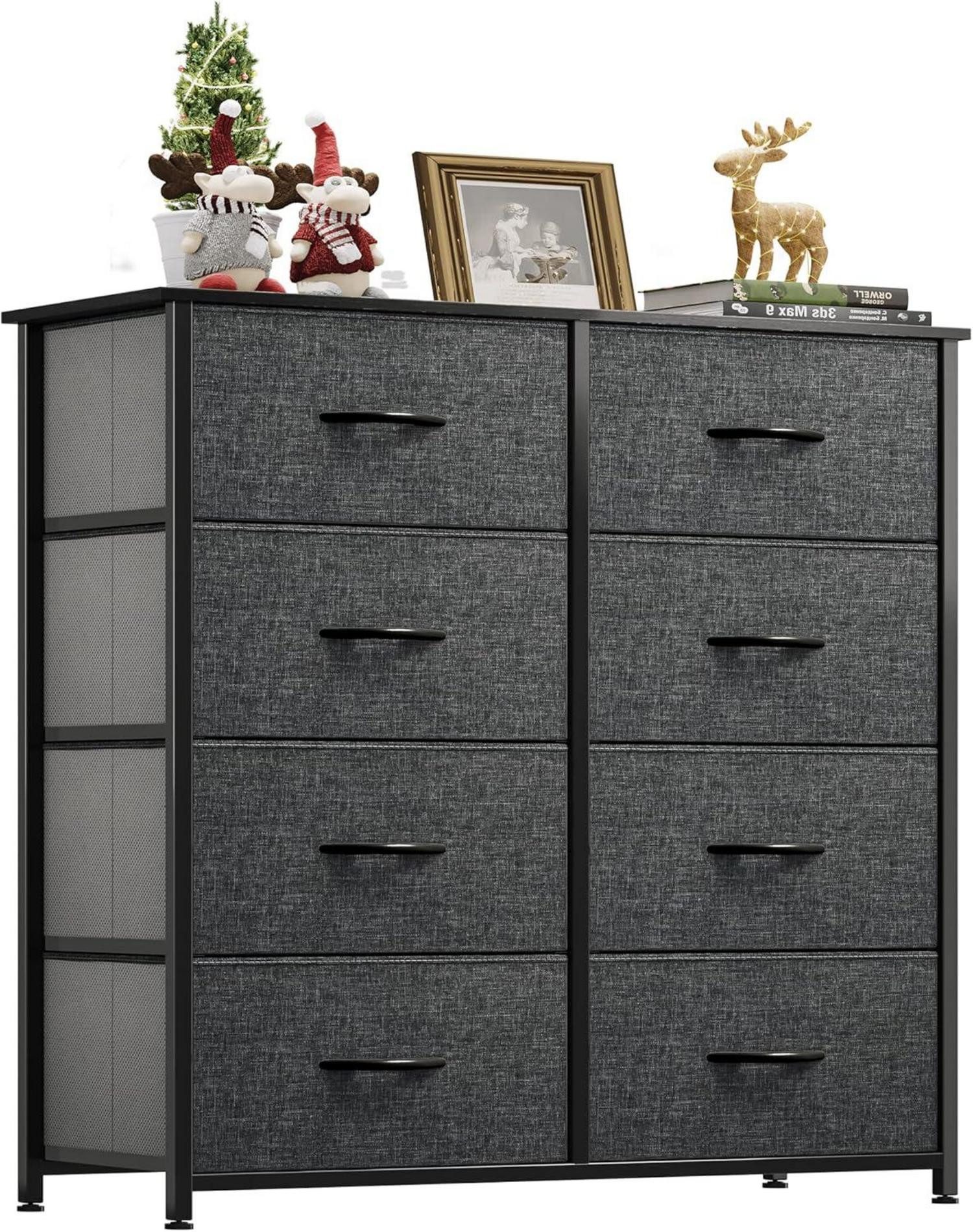 Die YITAHOME Kommode mit 8 Schubladen ist nicht nur funktional, sondern auch ästhetisch ansprechend. Mit ihrer modernen Industrial-Stil-Ästhetik fügt sie sich nahtlos in verschiedene Wohnbereiche ein. Dank der detaillierten Anweisungen und mitgelieferter Hardware gestaltet sich der Aufbau mühelos und stressfrei. Die wasserdichte Holztischplatte ergänzt perfekt das Farbschema des Stoffkommoden und sorgt für zusätzliche Langlebigkeit. Mit großzügigen Abmessungen von 86 x 30 x 98CM bietet diese Aufbewahrungskommode ausreichend Stauraum für eine Vielzahl von Gegenständen, von Kleidung über Spielzeug bis hin zu Kosmetikartikeln. Die 8 geräumigen Schubladen ermöglichen eine organisierte Aufbewahrung und schnellen Zugriff auf Ihre persönlichen Gegenstände. Die Kommode besteht aus hochwertigem kationischem Stoff auf der Vorderseite und atmungsaktivem Vliesstoff auf den anderen Seiten, was nicht nur für Langlebigkeit, sondern auch für Pflegeleichtigkeit sorgt. Einfach mit einem feuchten Tuch abwischen und an der Luft trocknen lassen, um sie sauber zu halten. Die robuste Konstruktion mit Metallrahmen, MDF-Holzplatte und klappbaren Schubladen macht diese Kommode zu einer langlebigen und ansprechenden Wahl. Die Stoffsgriffe erleichtern das Öffnen und Спрятать der Schubladen, während die verstellbaren Plastikfüße Ihren Boden vor Kratzern schützen. Holen Sie sich jetzt die YITAHOME Kommode mit 8 Schubladen und bringen Sie Stil und Funktionalität in Ihr Zuhause!