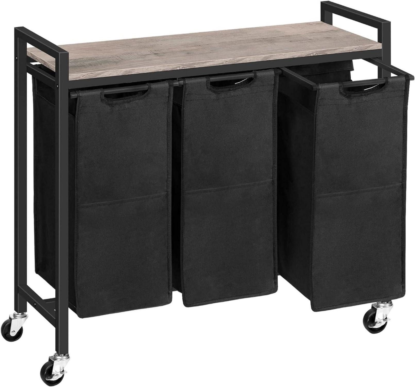 Dank der feststellbaren Räder können Sie den Wäschesammler sicher an einem Ort Ihrer Wahl fixieren. Das integrierte Regal bietet zusätzlichen Stauraum für Ihre Waschutensilien, und die abnehmbaren Wäschesäcke erleichtern das Transportieren und Waschen der Wäsche.